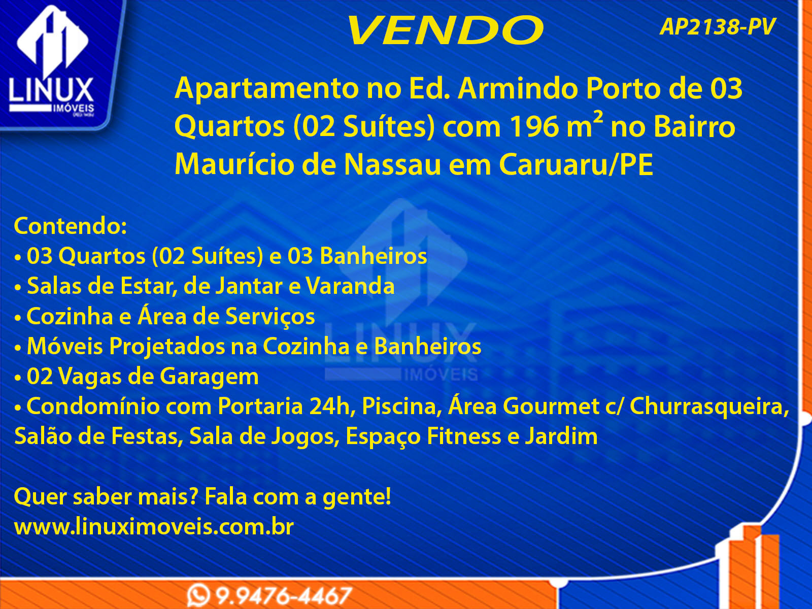 R$970.000,00 / VENDAApartamento no Ed. Armindo Porto em Caruaru/PE à Venda (AP2138-PV)