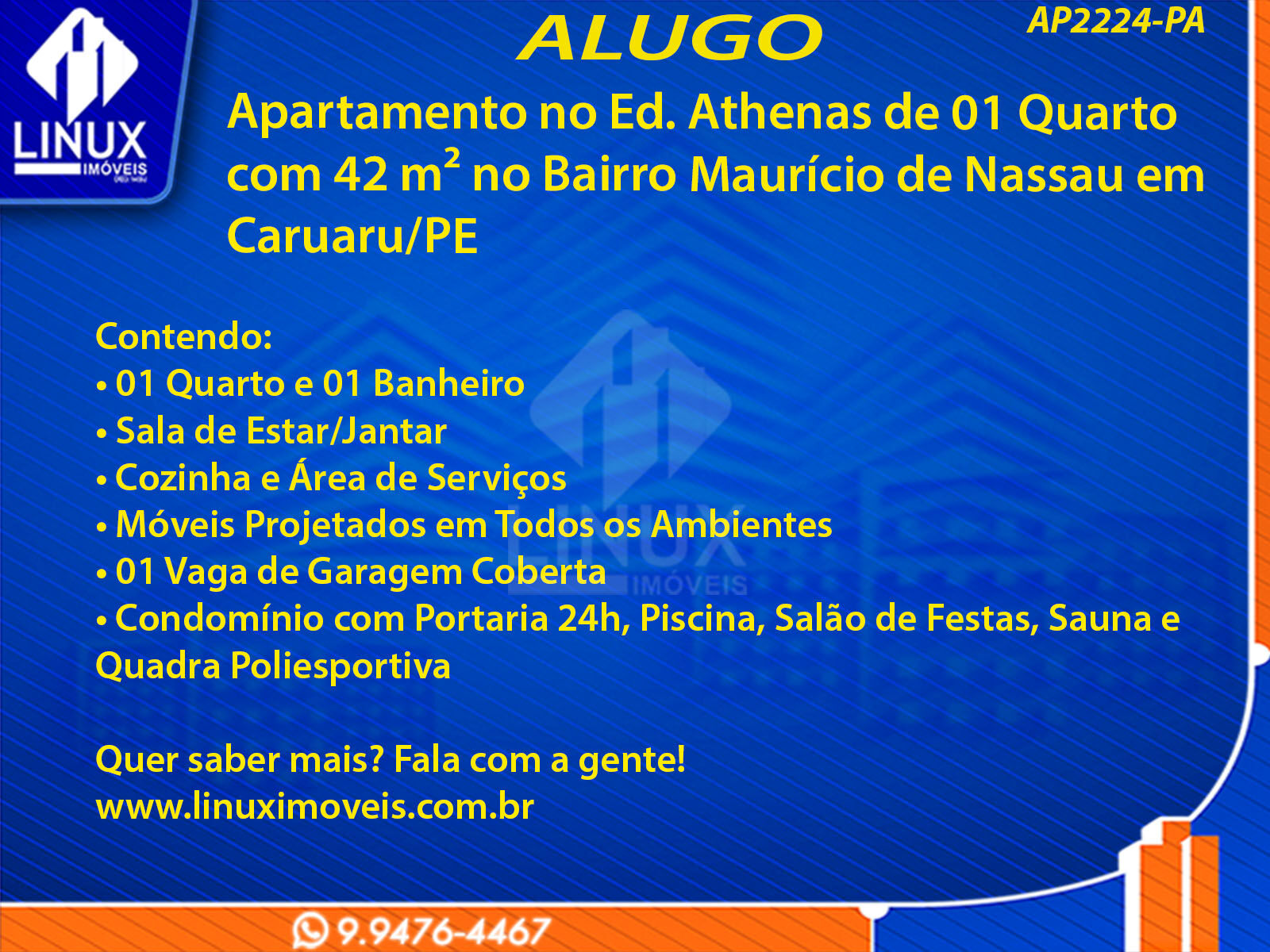 Apartamento no Ed. Athenas em Caruaru/PE p/ Locação (AP2224-PA)