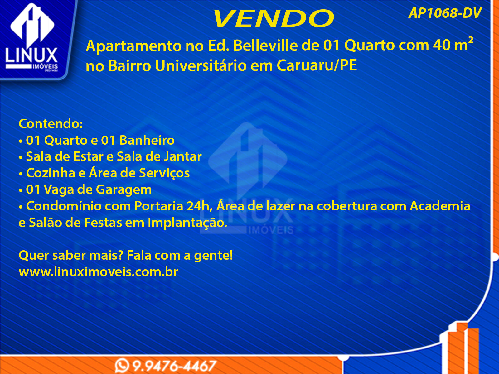 R$240.000,00 / VENDAApartamento no Ed. Belleville à Venda (AP1068-DV)