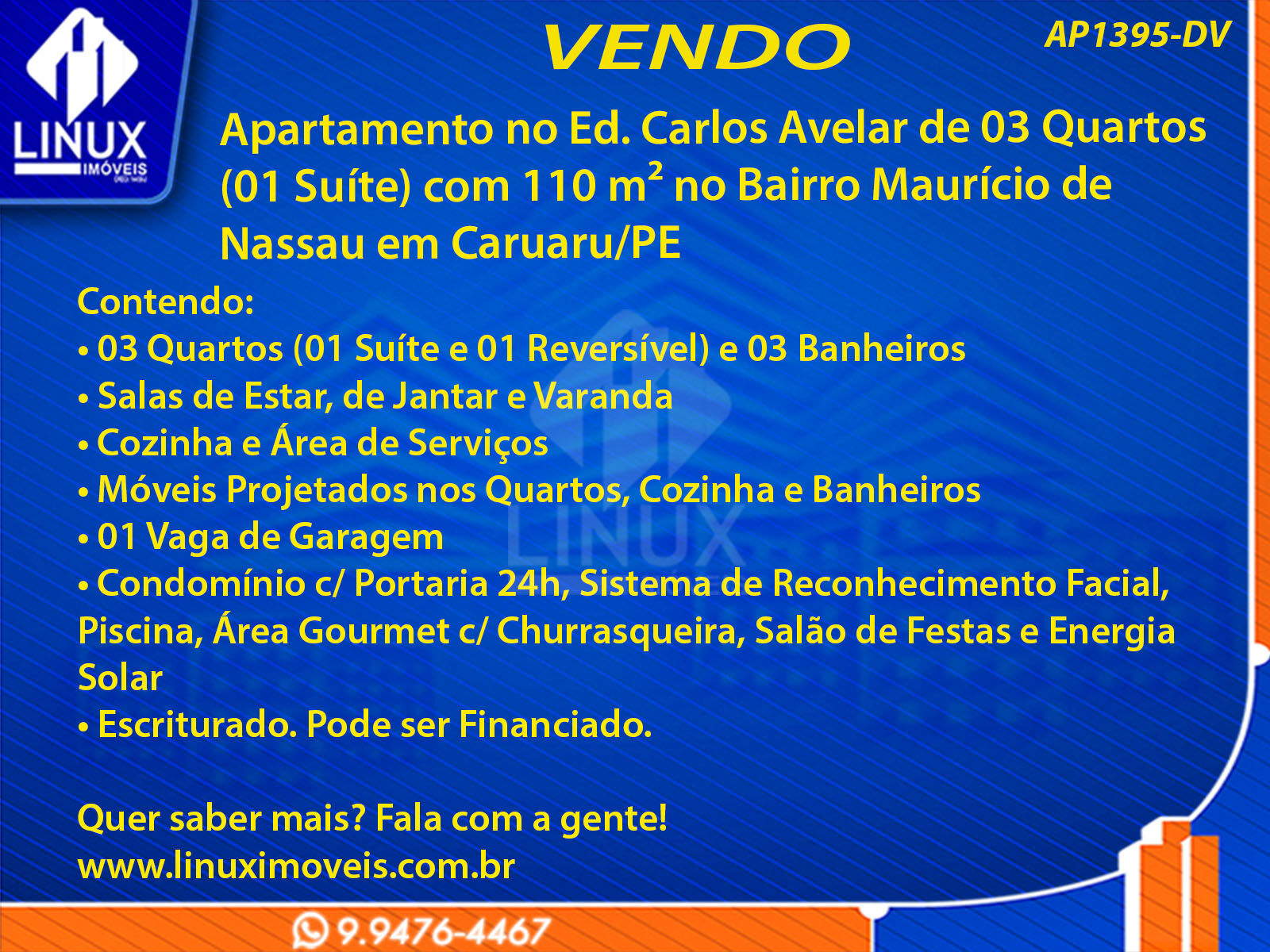 Apartamento no Ed. Carlos Avelar em Caruaru/PE à Venda (AP1395-DV)