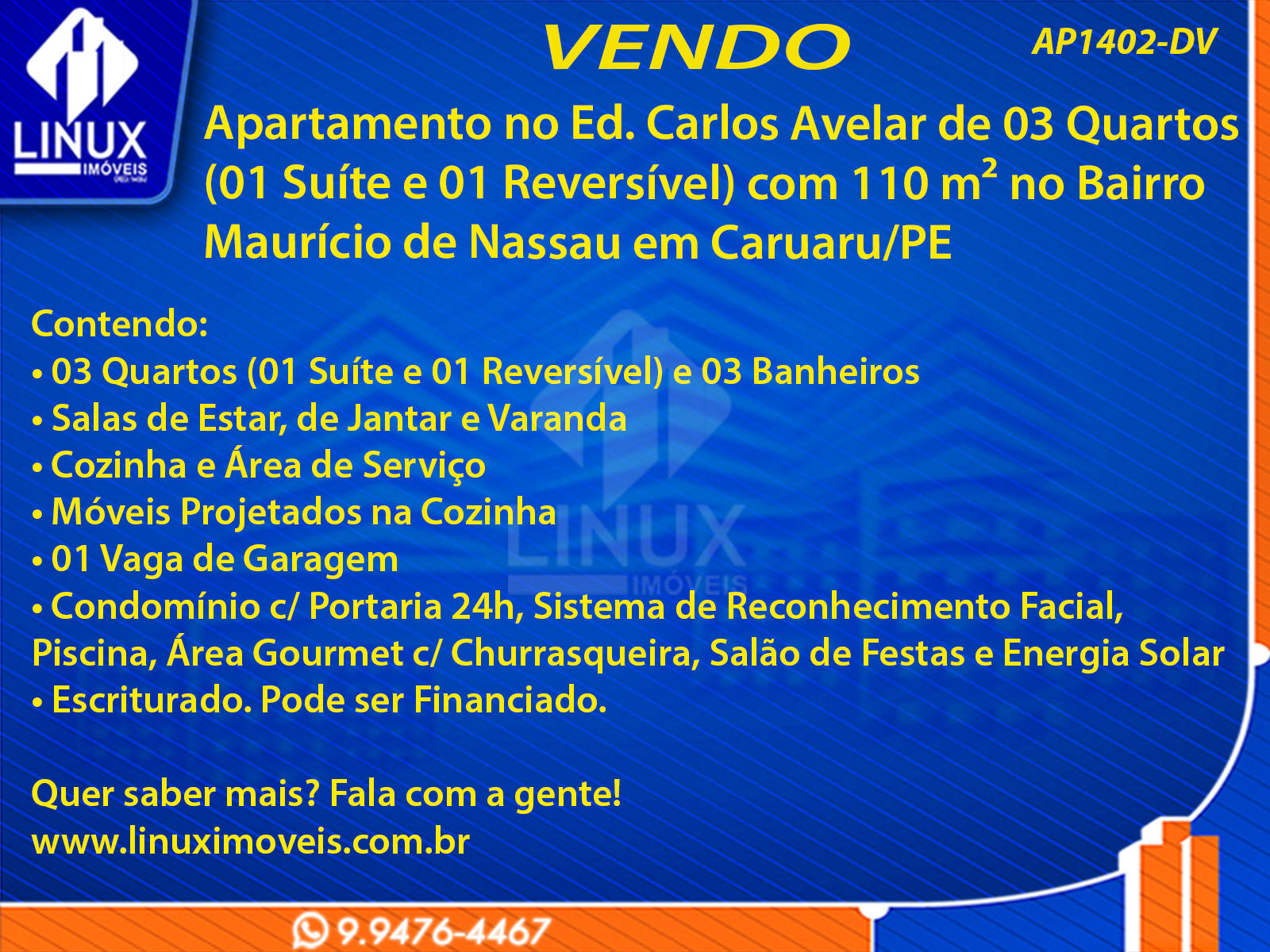 R$430.000,00 / VENDAApartamento no Ed. Carlos Avelar em Caruaru/PE à Venda (AP1402-DV)