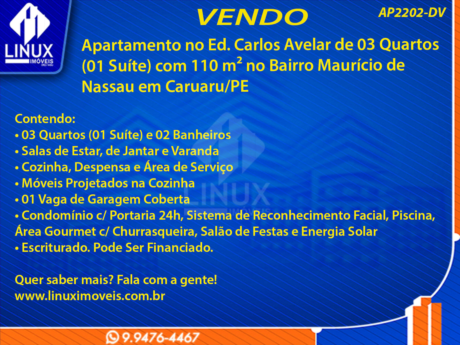 Apartamento no Ed. Carlos Avelar em Caruaru/PE à Venda (AP2202-DV)