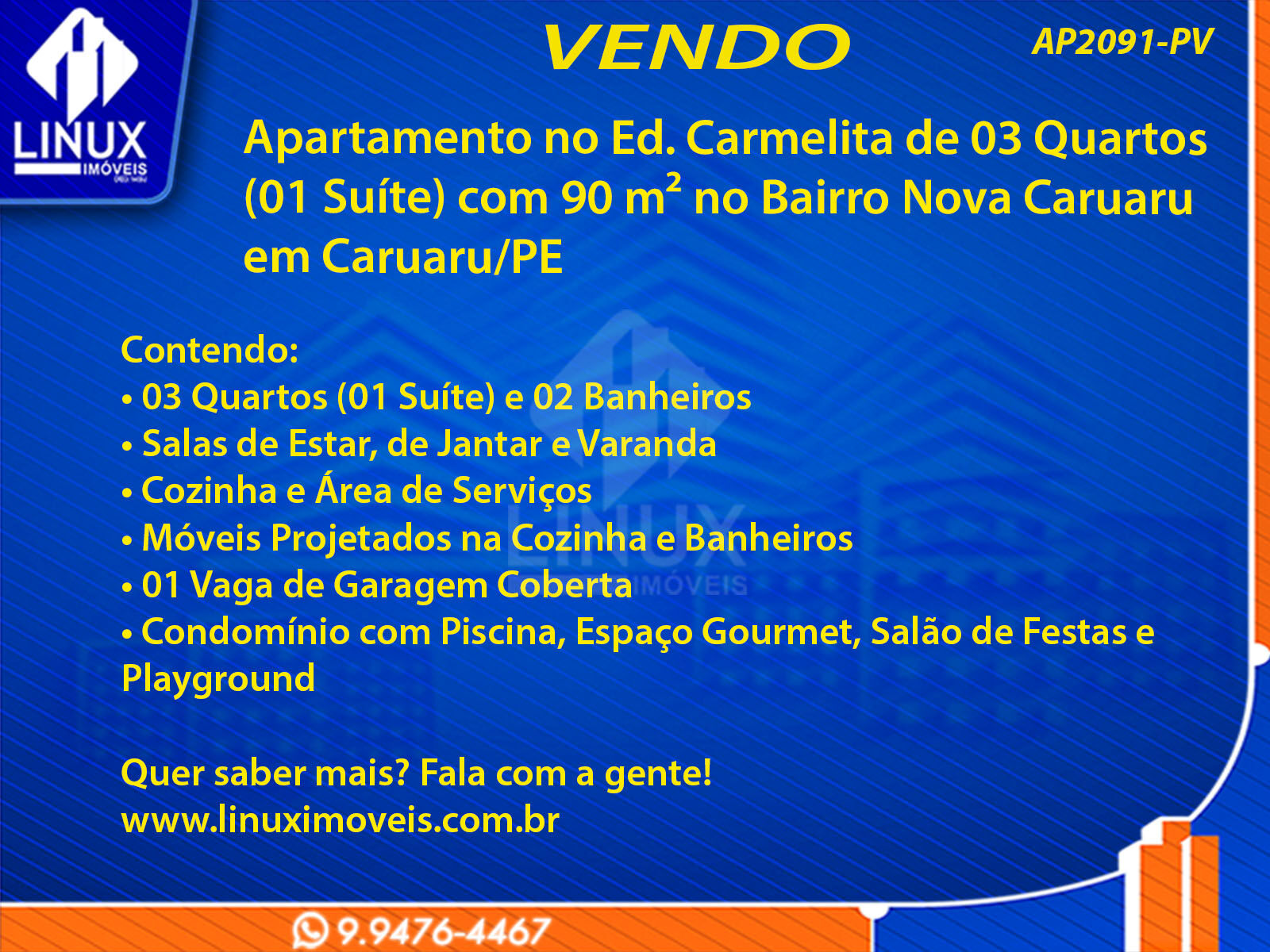 R$360.000,00 / VENDAApartamento no Ed. Carmelita em Caruaru/PE à Venda (AP2091-PV)