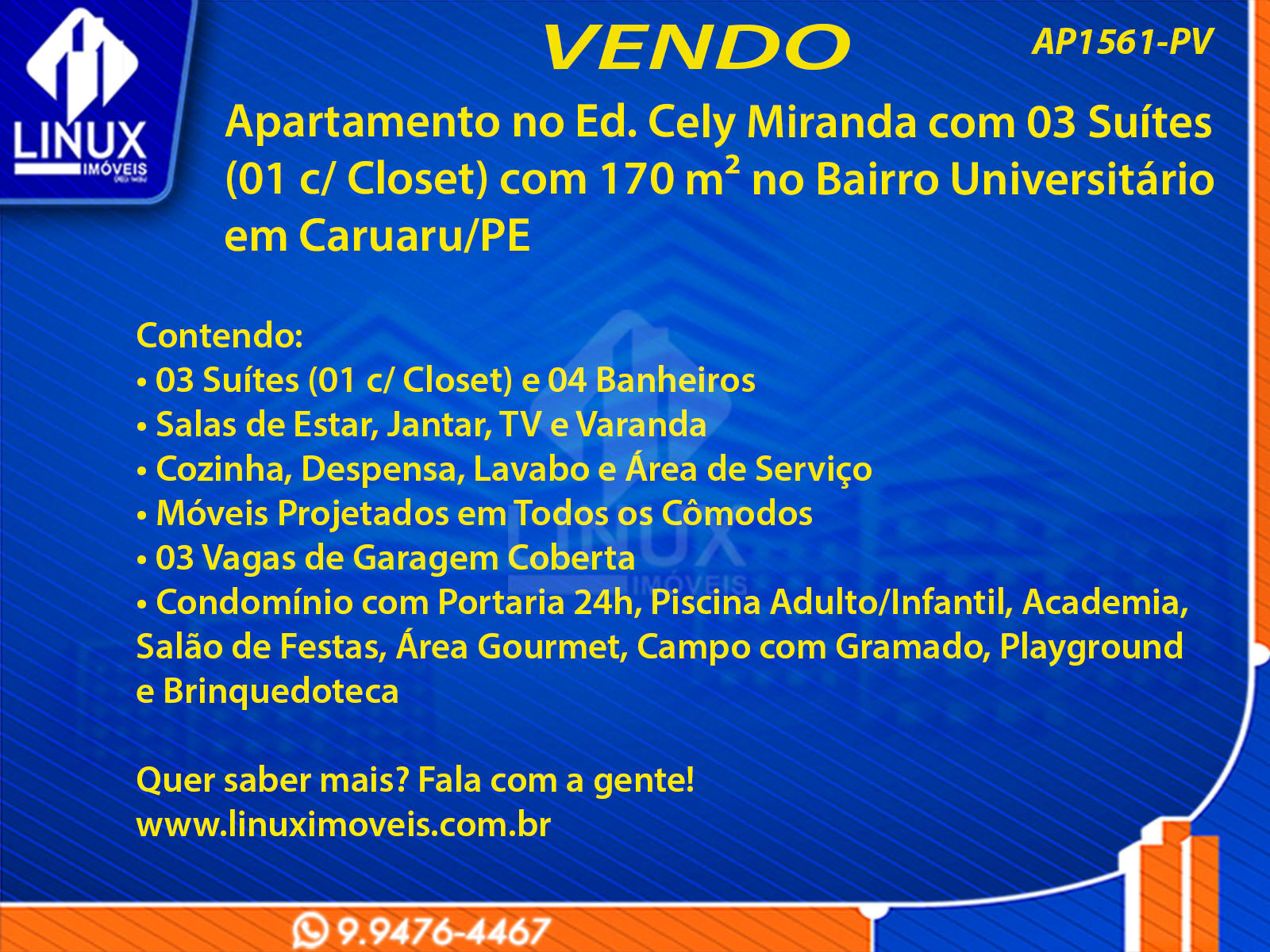 R$1.500.000,00 / VENDAApartamento no Ed. Cely Miranda em Caruaru à Venda (AP1561-PV)