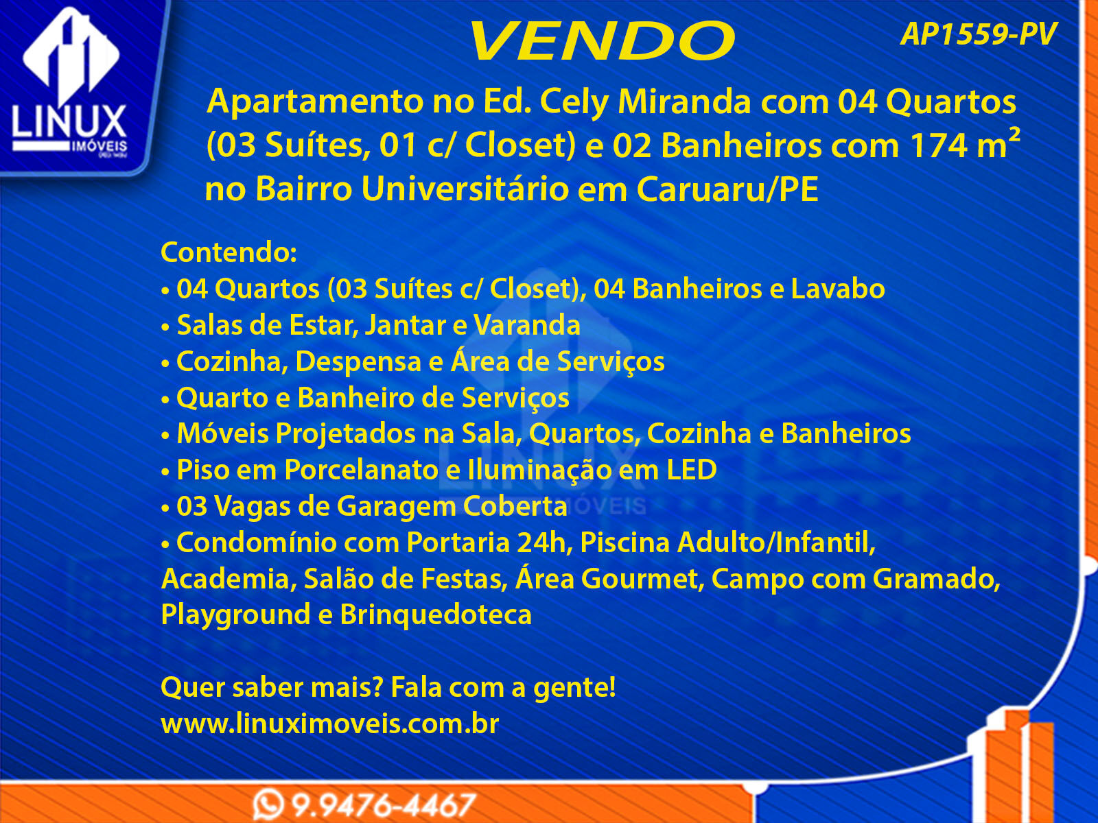 R$1.550.000,00 / VENDAApartamento no Ed. Cely Miranda em Caruaru/PE à Venda (AP1559-PV)