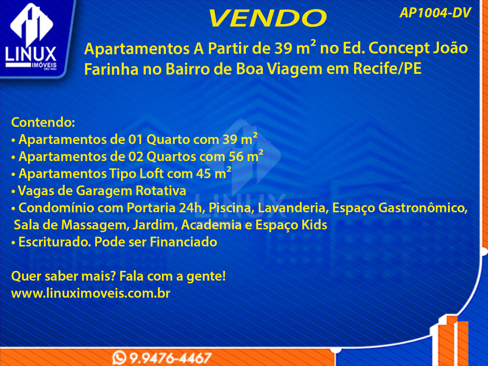 Apartamento no Ed. Concept João Farinha em Recife/PE à Venda (AP1004-DV)
