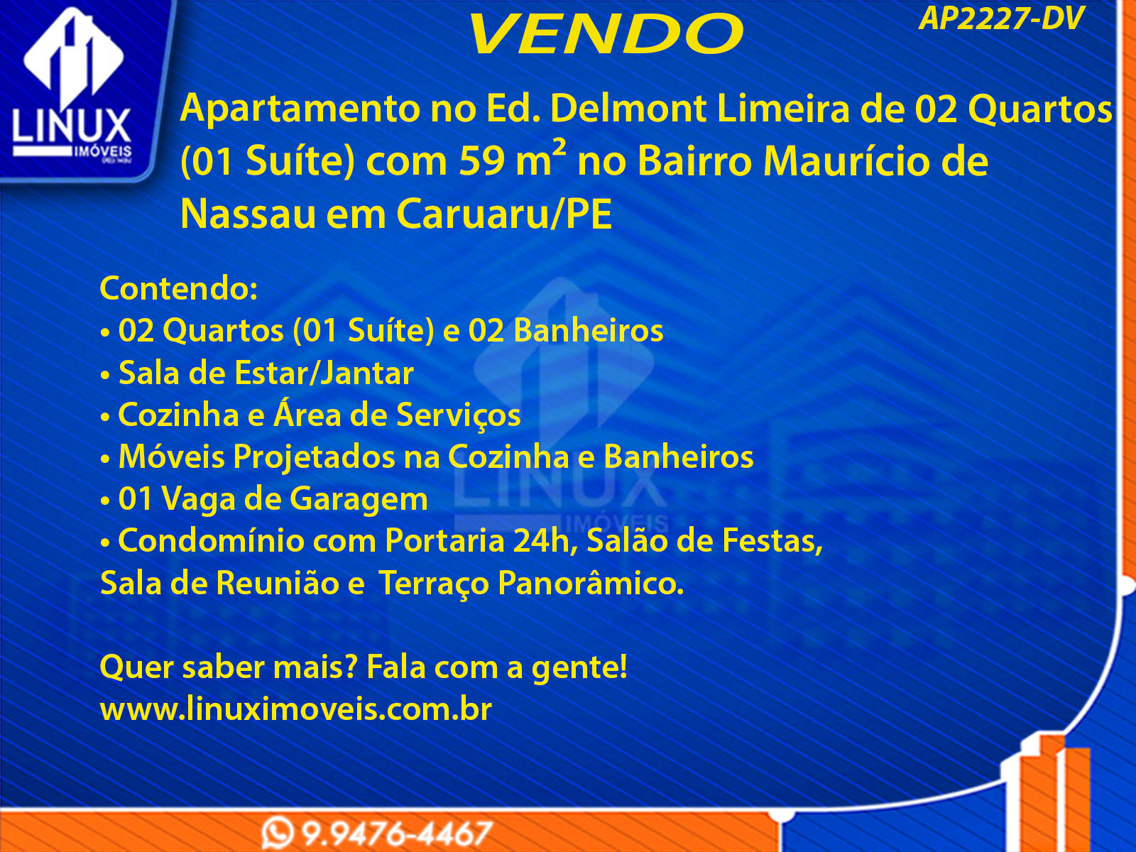 R$310.000,00 / VENDAApartamento no Ed. Delmont Limeira em Caruaru/PE à Venda (AP2227-DV)