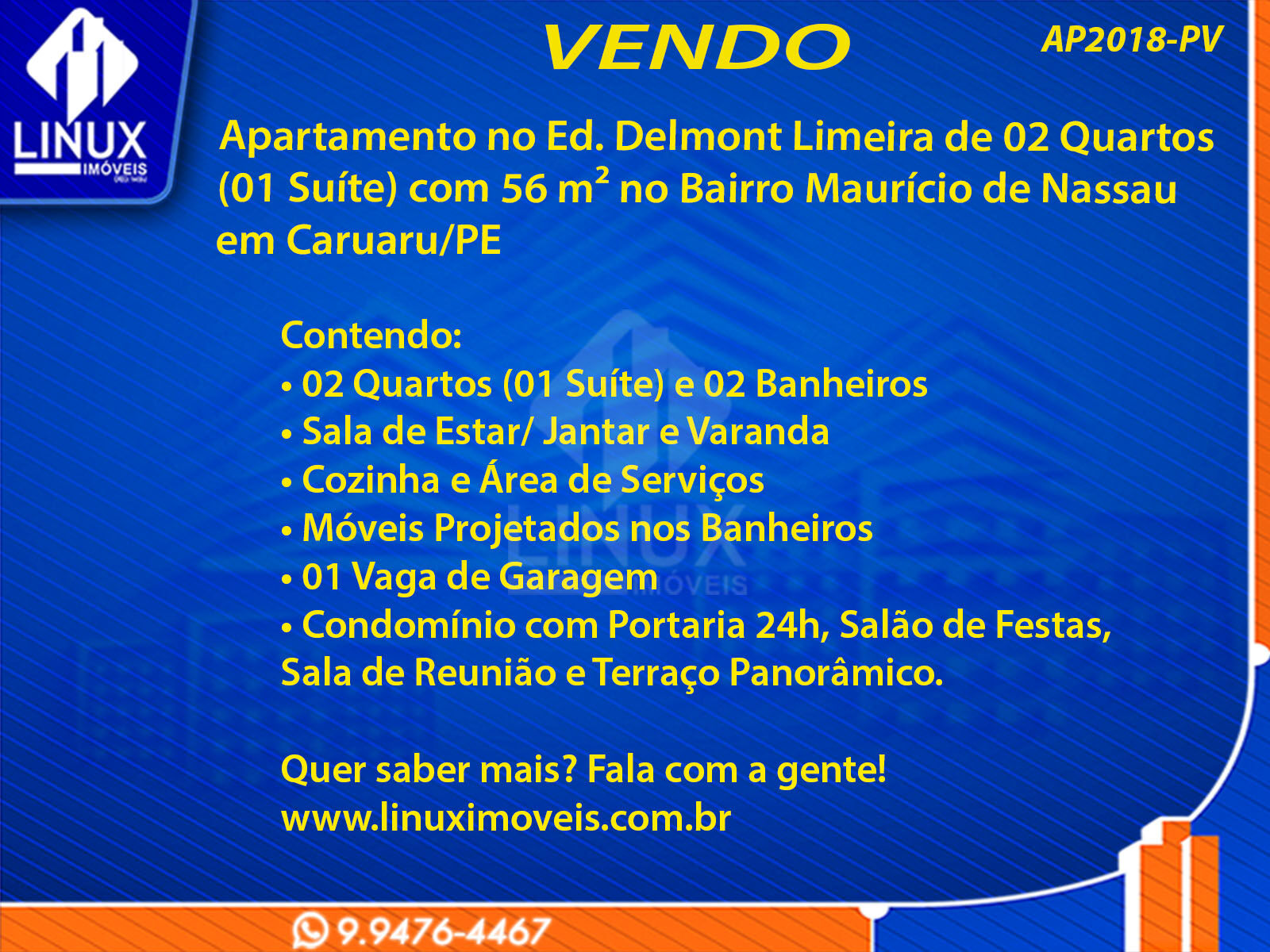 R$250.000,00 / VENDAApartamento no Ed. Delmont Limeira em Caruaru/PE à Venda (AP2018-PV)