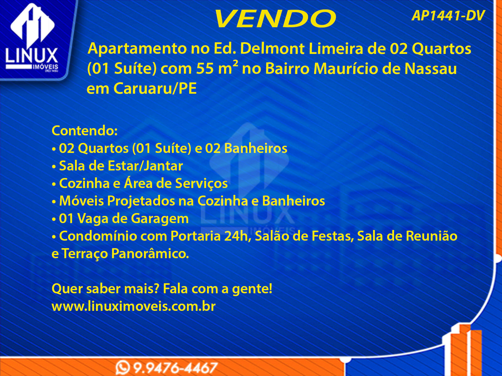 Apartamento no Ed. Delmont Limeira de 02 Quartos (01 Suíte) com 55 m² no Bairro Maurício de Nassau em Caruaru/PE