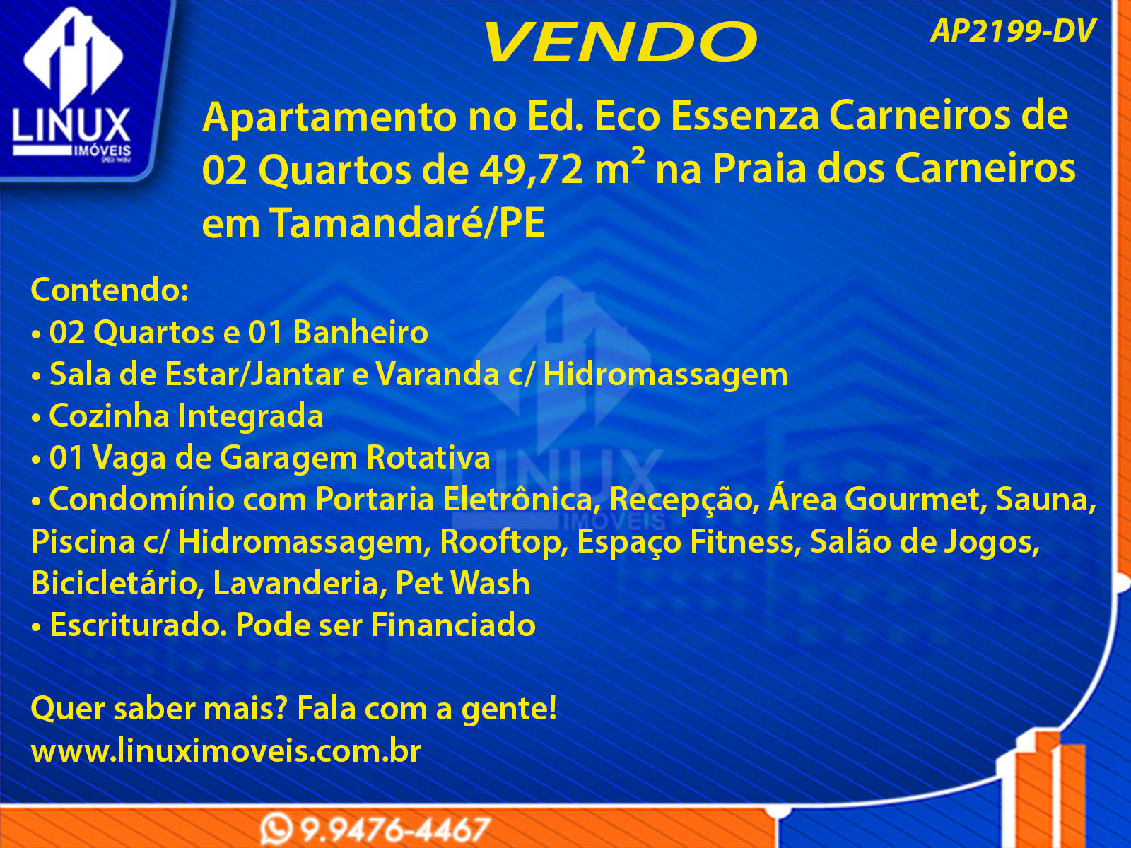 Apartamento no Ed. Eco Essenza Carneiros em Tamandaré/PE à Venda (AP2199-DV)