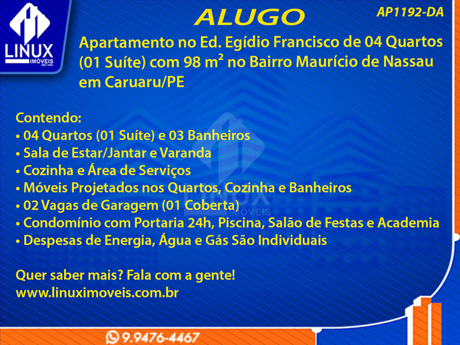 Apartamento no Ed. Egídio Francisco de 04 Quartos (01 Suíte) com 98 m² no Bairro Maurício de Nassau em Caruaru/PE