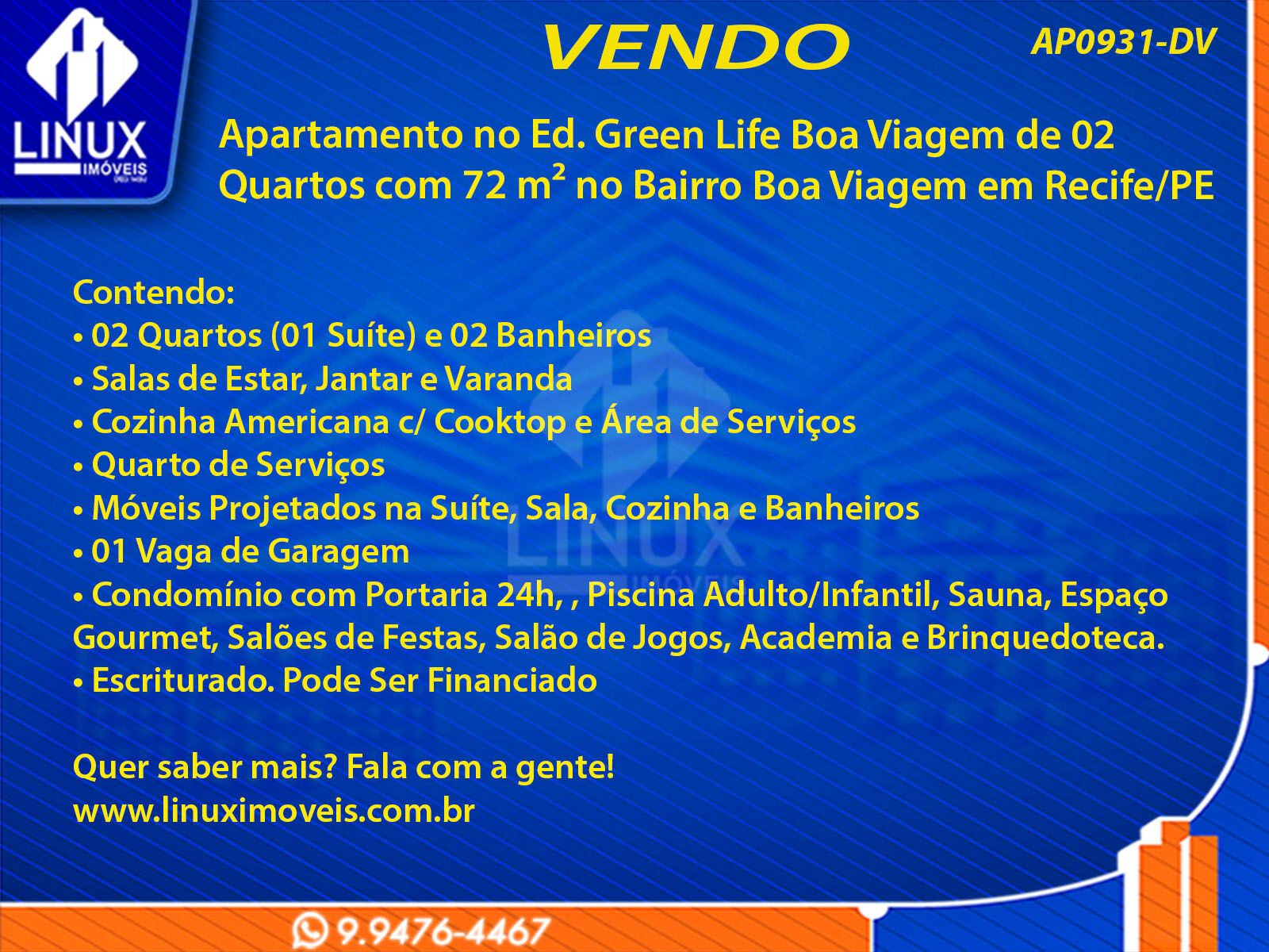 Apartamento no Ed. Green Life Boa Viagem em Recife/PE à Venda (AP0931-DV)