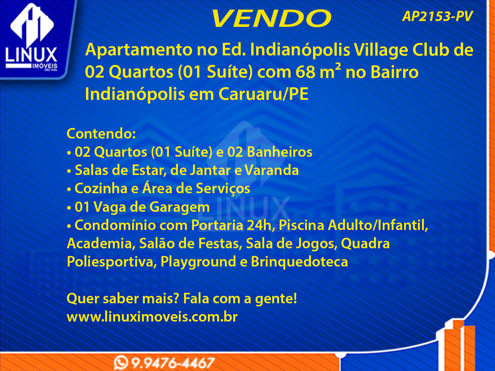 Apartamento no Ed. Indianópolis Village Club à Venda em Caruaru/PE (AP2153-PV)