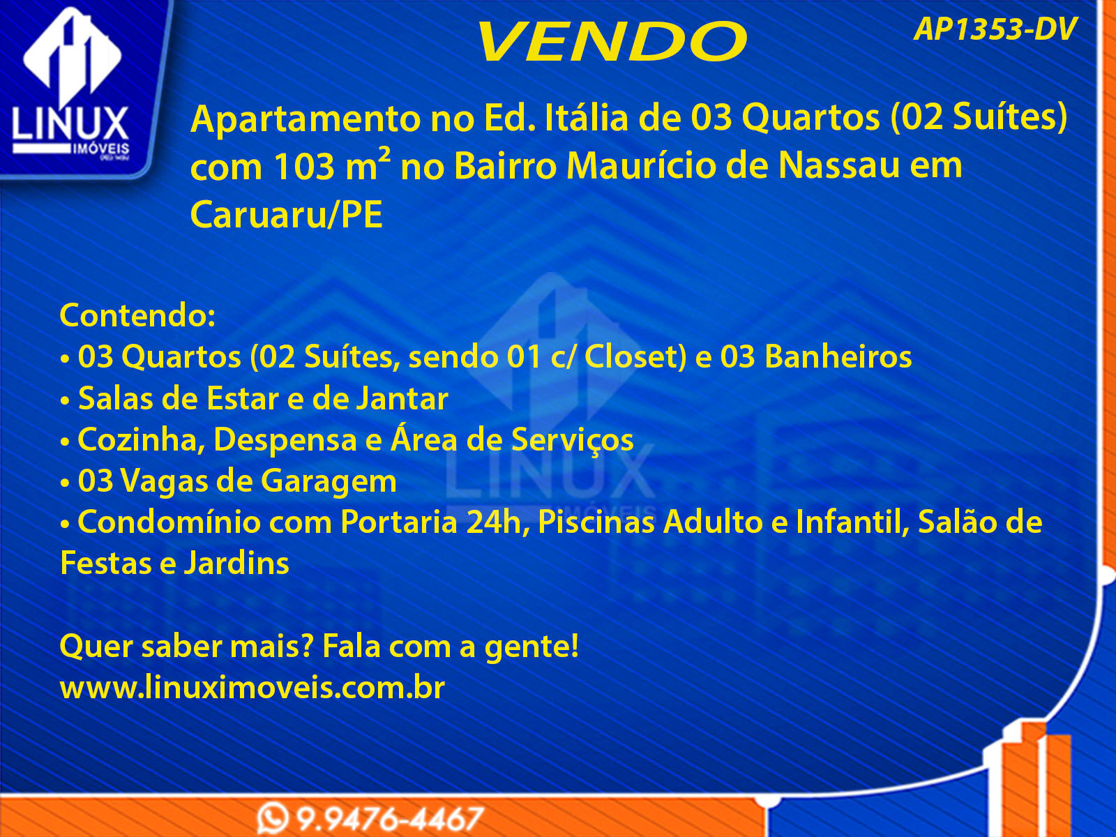 R$770.000,00 / VENDAApartamento no Ed. Itália em Caruaru/PE à Venda (AP1353-DV)