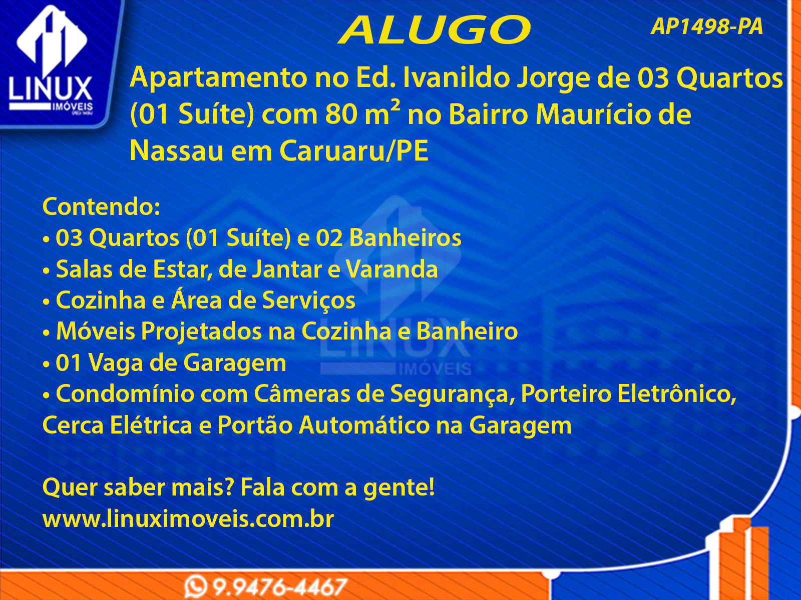 Apartamento no Ed. Ivanildo Jorge em Caruaru/PE p/ Locação (AP1498-PA)
