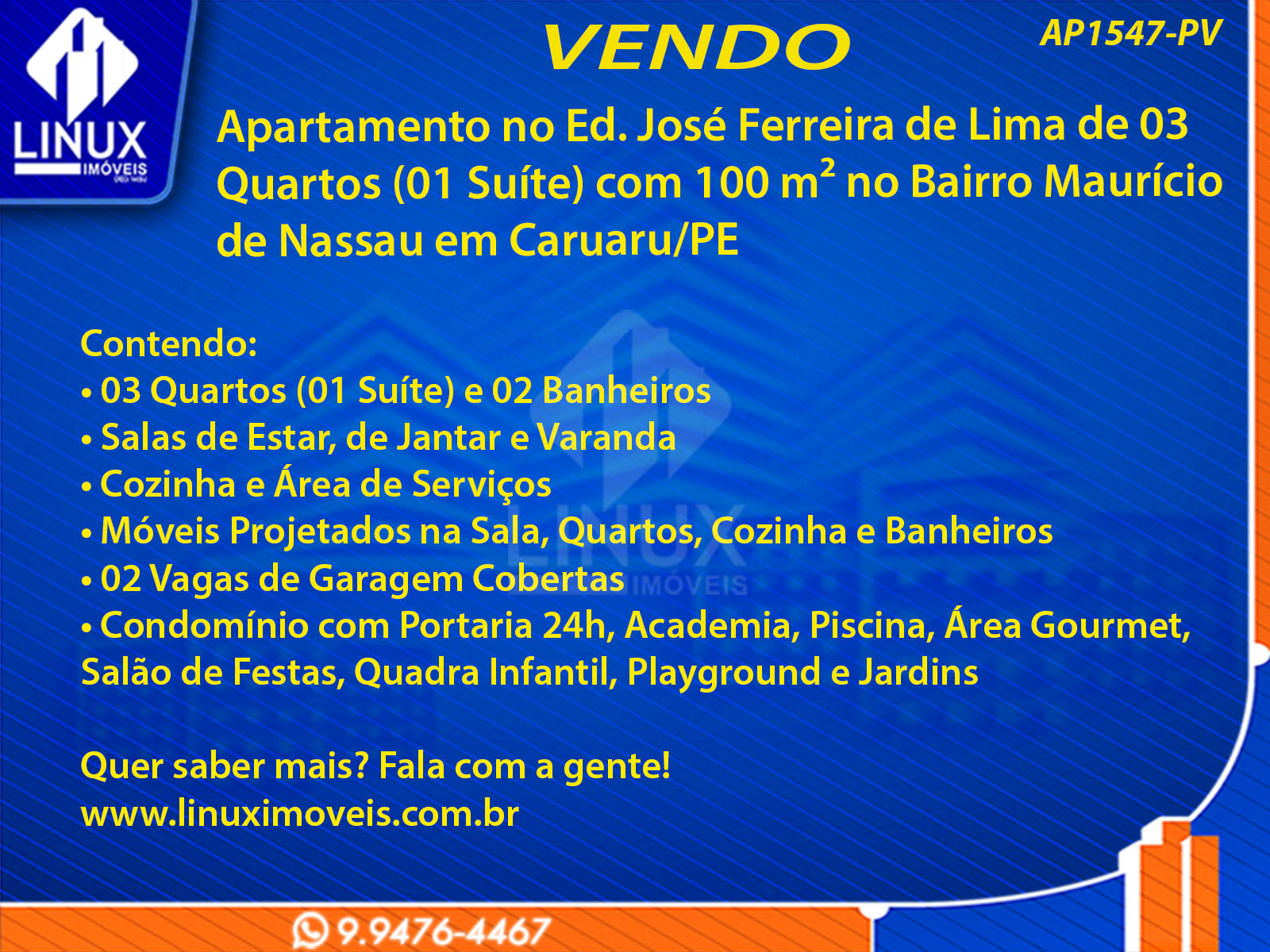 R$630.000,00 / VENDAApartamento no Ed. José Ferreira de Lima em Caruaru/PE à Venda (AP1547-PV)