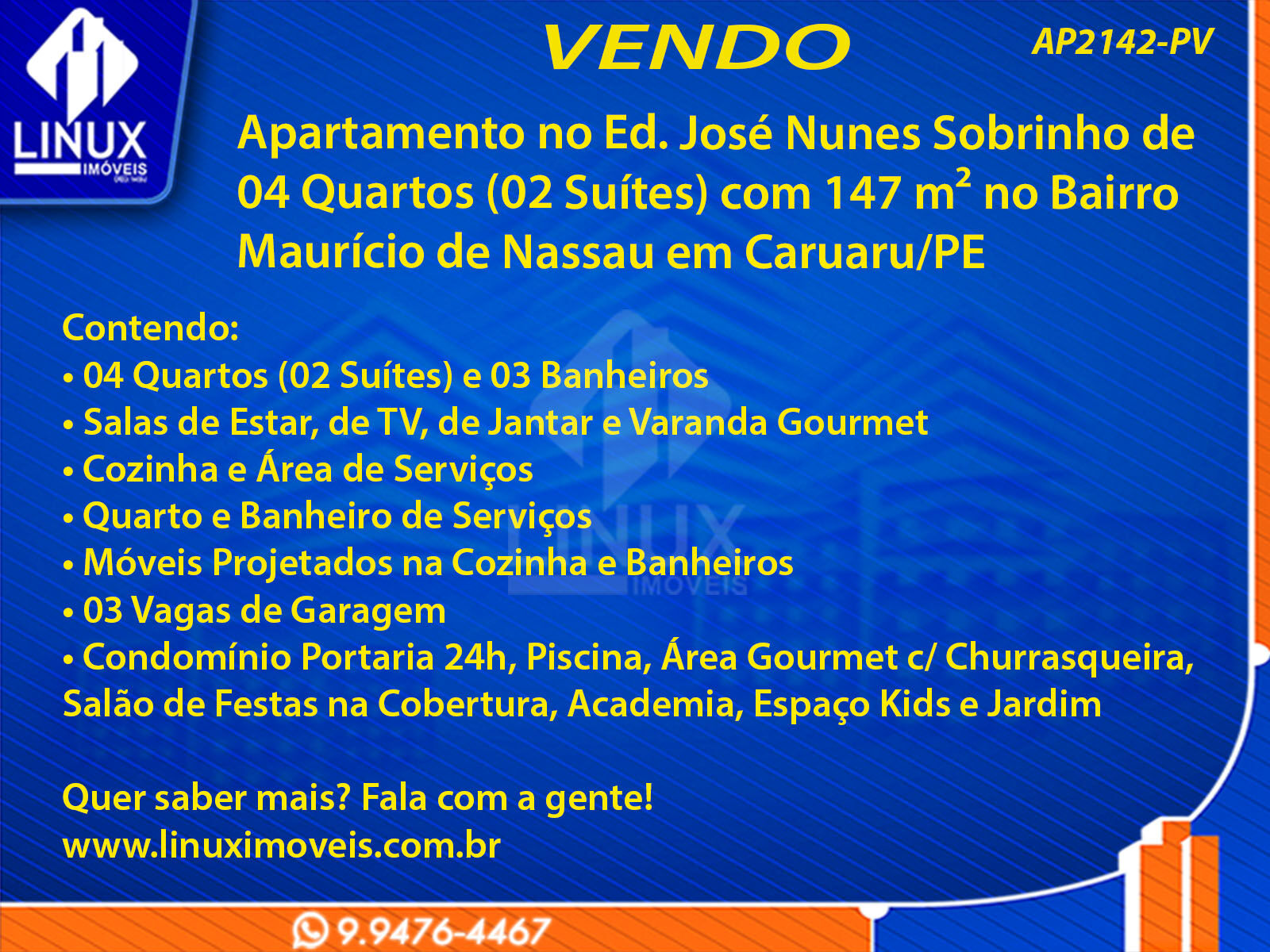 R$965.000,00 / VENDAApartamento no Ed. José Nunes Sobrinho em Caruaru/PE à Venda (AP2142-PV)