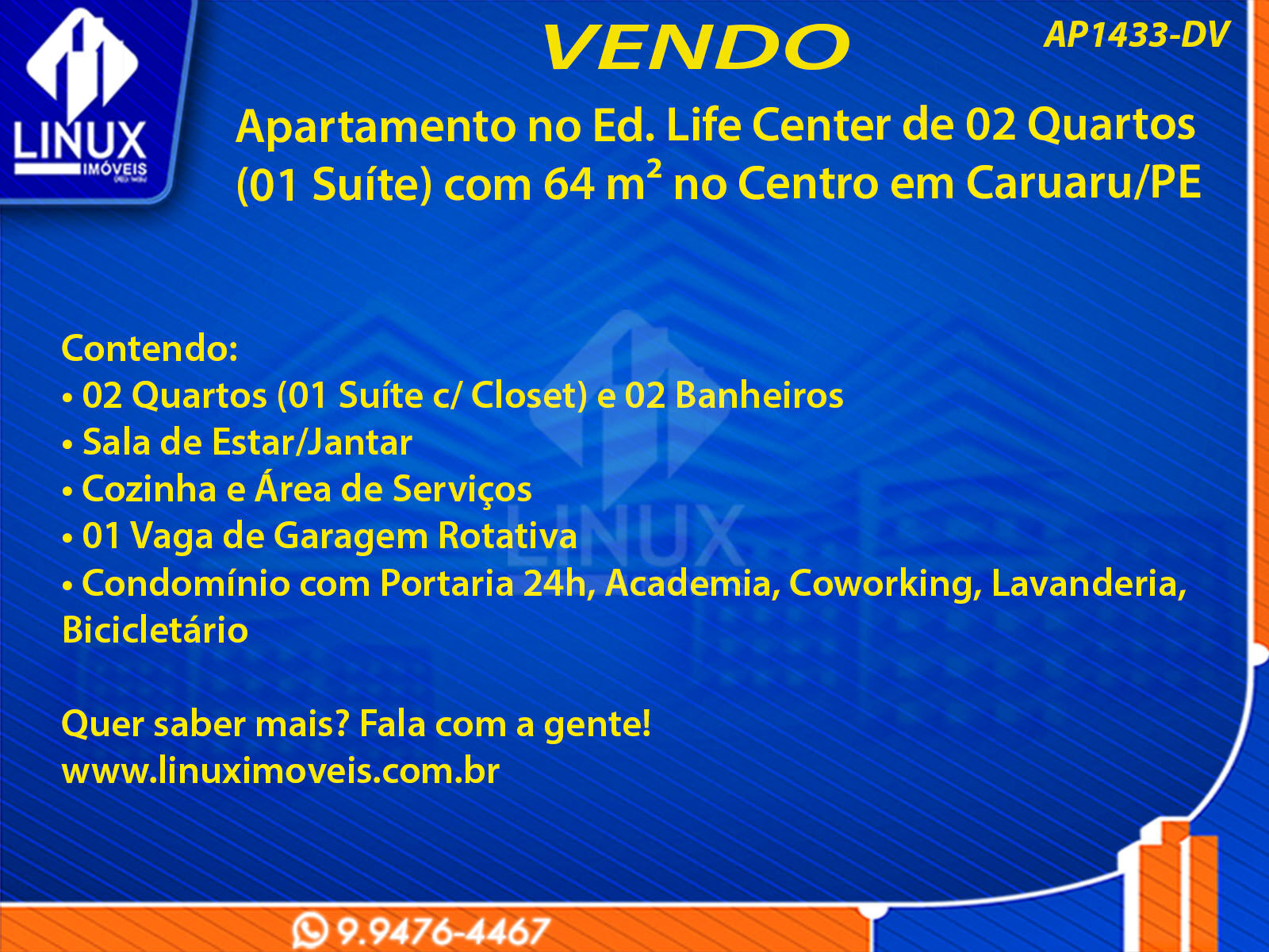 Apartamento no Ed. Life Center à Venda (AP1433-DV)