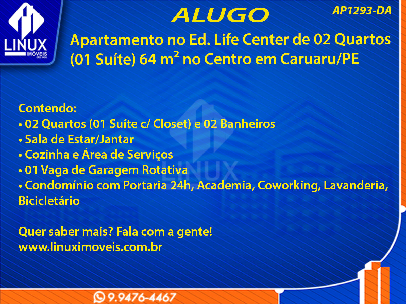 Apartamento no Ed. Life Center p/ Locação (AP1293-DA)