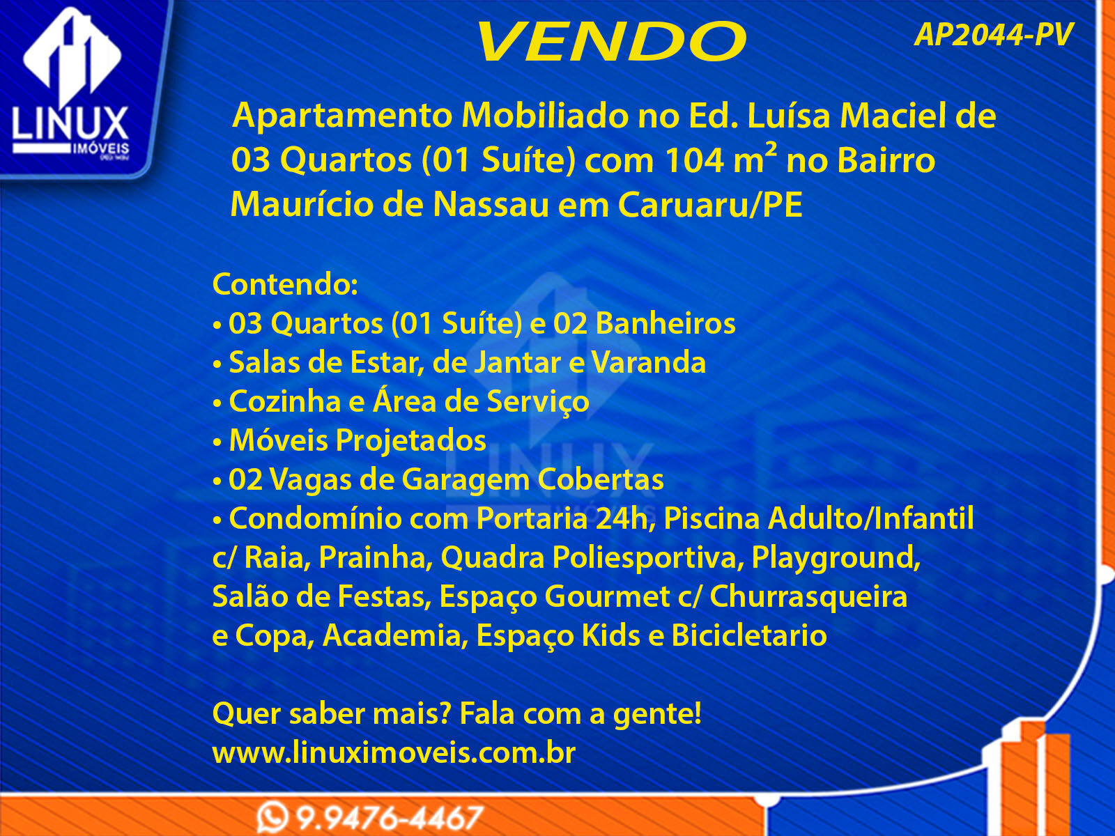 Apartamento no Ed. Luísa Maciel em Caruaru/PE à Venda (AP2044-PV)