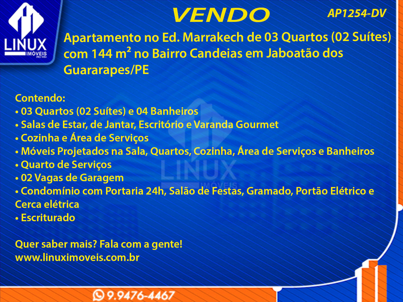 R$520.000,00 / VENDAApartamento no Ed. Marrakech à Venda (AP1254-DV)