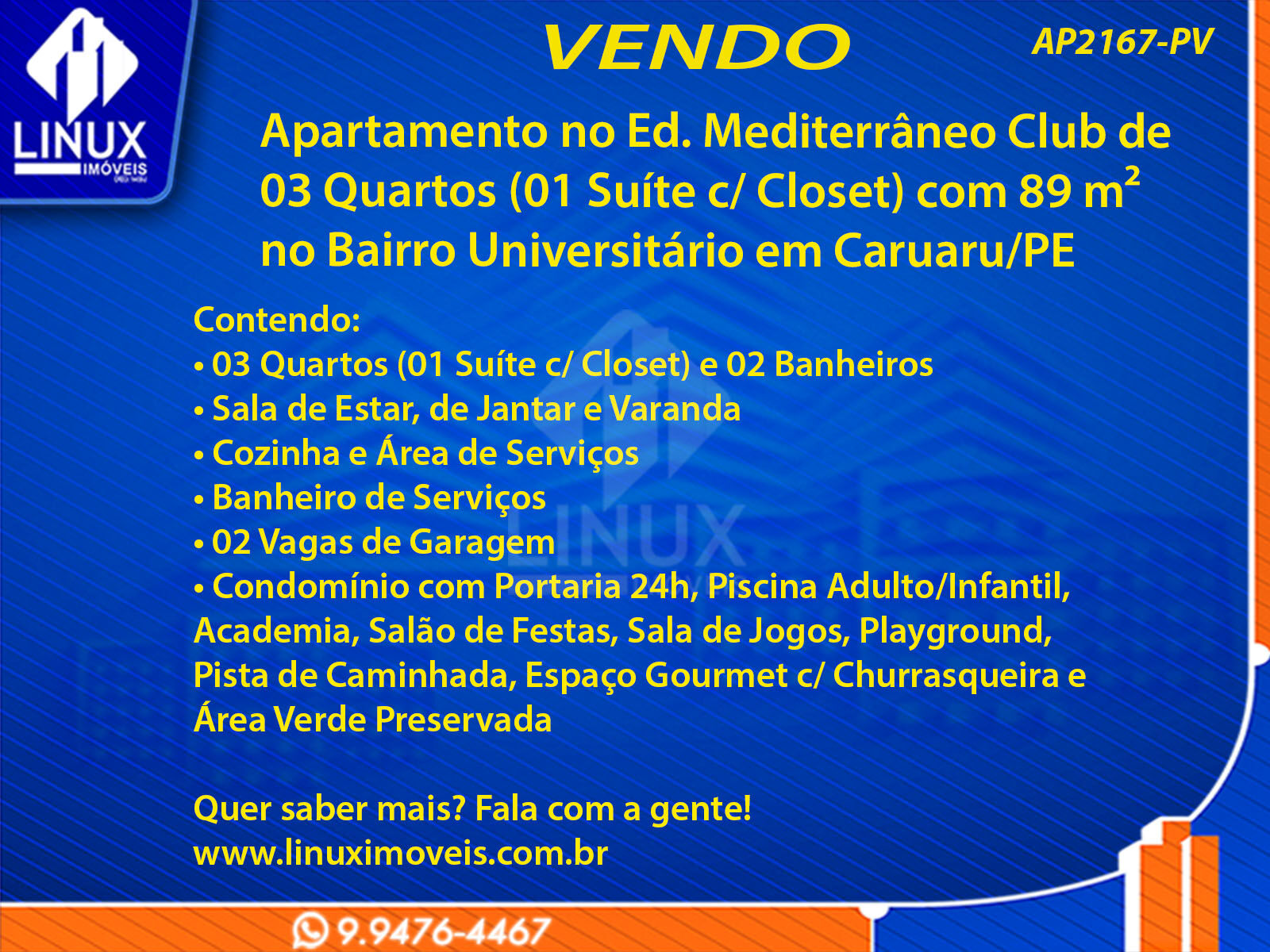 Apartamento no Ed. Mediterrâneo Club em Caruaru/PE à Venda (AP2167-PV)