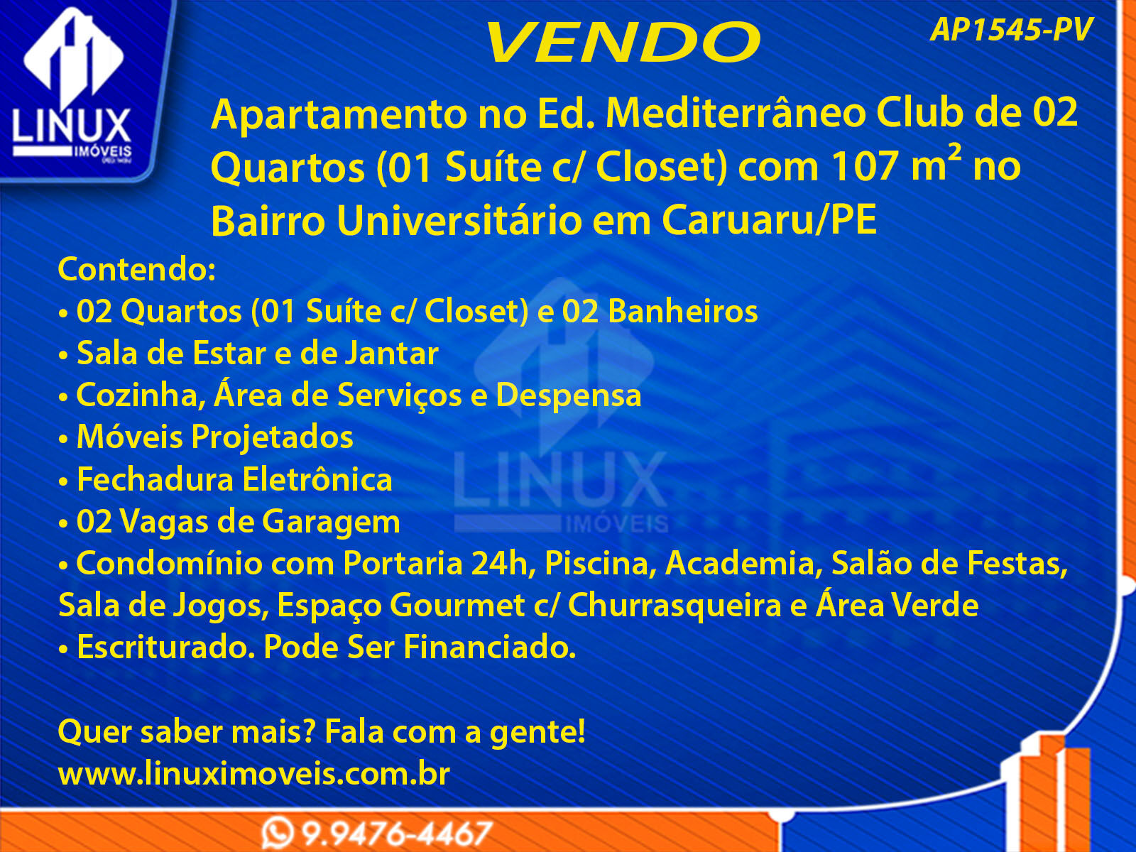 Apartamento no Ed. Mediterrâneo Club em Caruaru/PE à Venda (AP1545-PV)