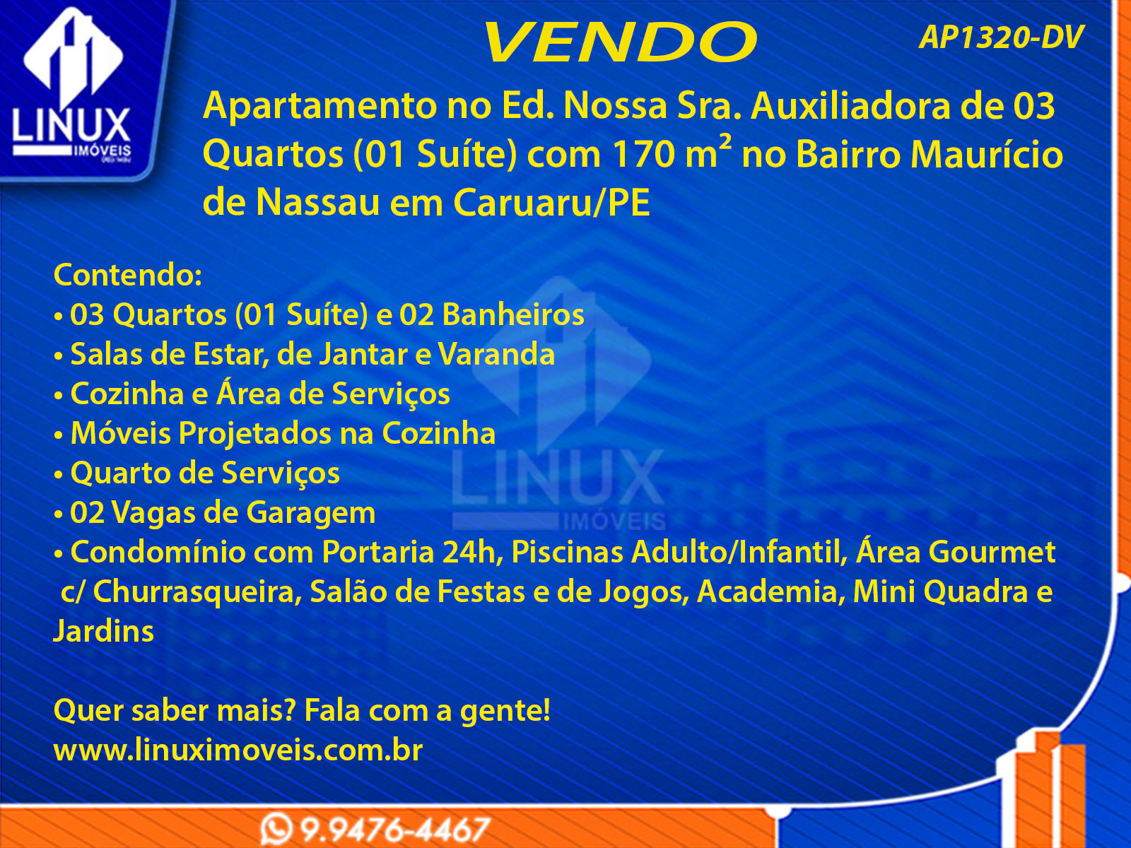 Apartamento no Ed. Nossa Sra. Auxiliadora em Caruaru/PE à Venda (AP1320-DV)
