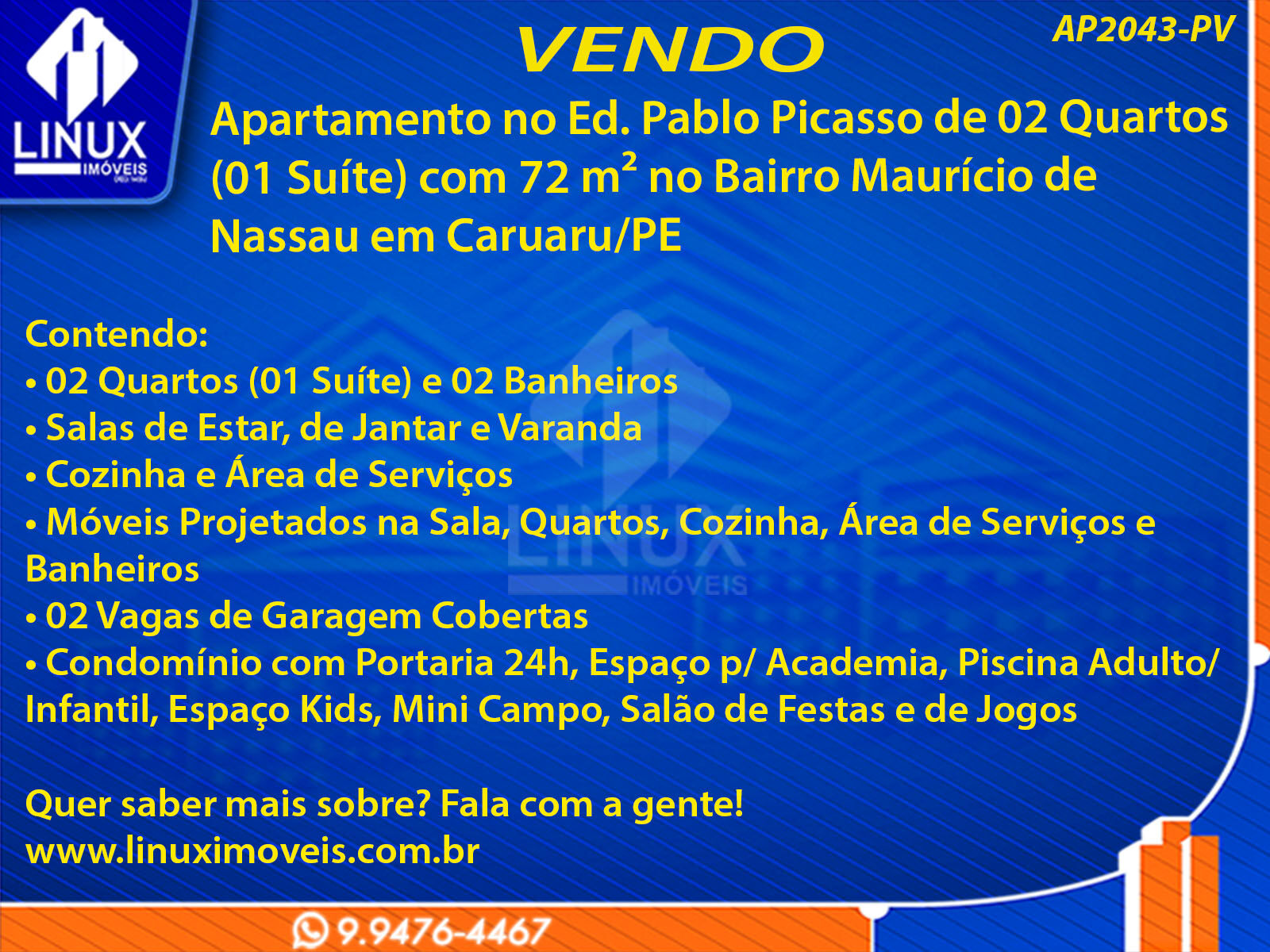 Apartamento no Ed. Pablo Picasso em Caruaru/PE à Venda (AP2043-PV)
