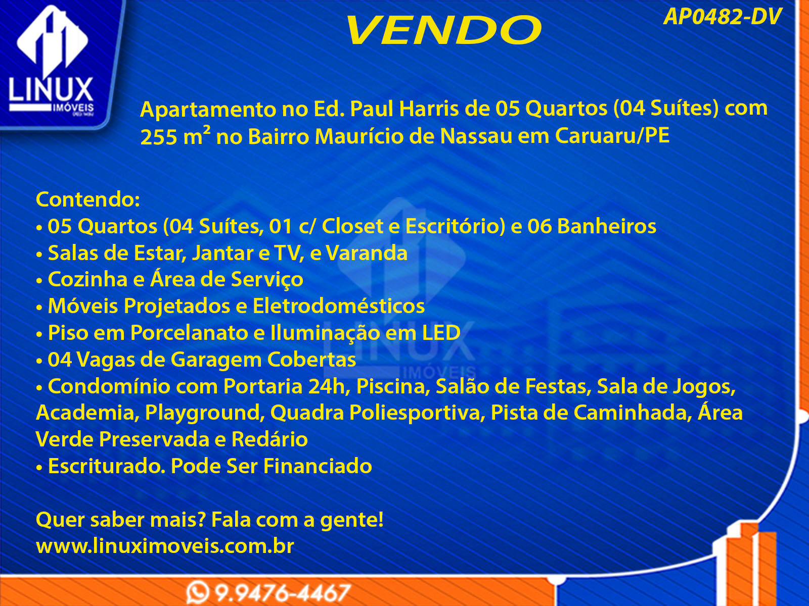 Apartamento no Ed. Paul Harris de 05 Quartos (04 Suítes) com 255 m² no Bairro Maurício de Nassau em Caruaru/PE