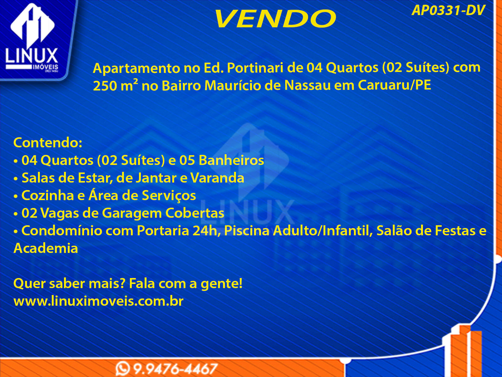 Apartamento no Ed. Portinari de 04 Quartos (02 Suítes) com 250 m² no Bairro Maurício de Nassau em Caruaru/PE