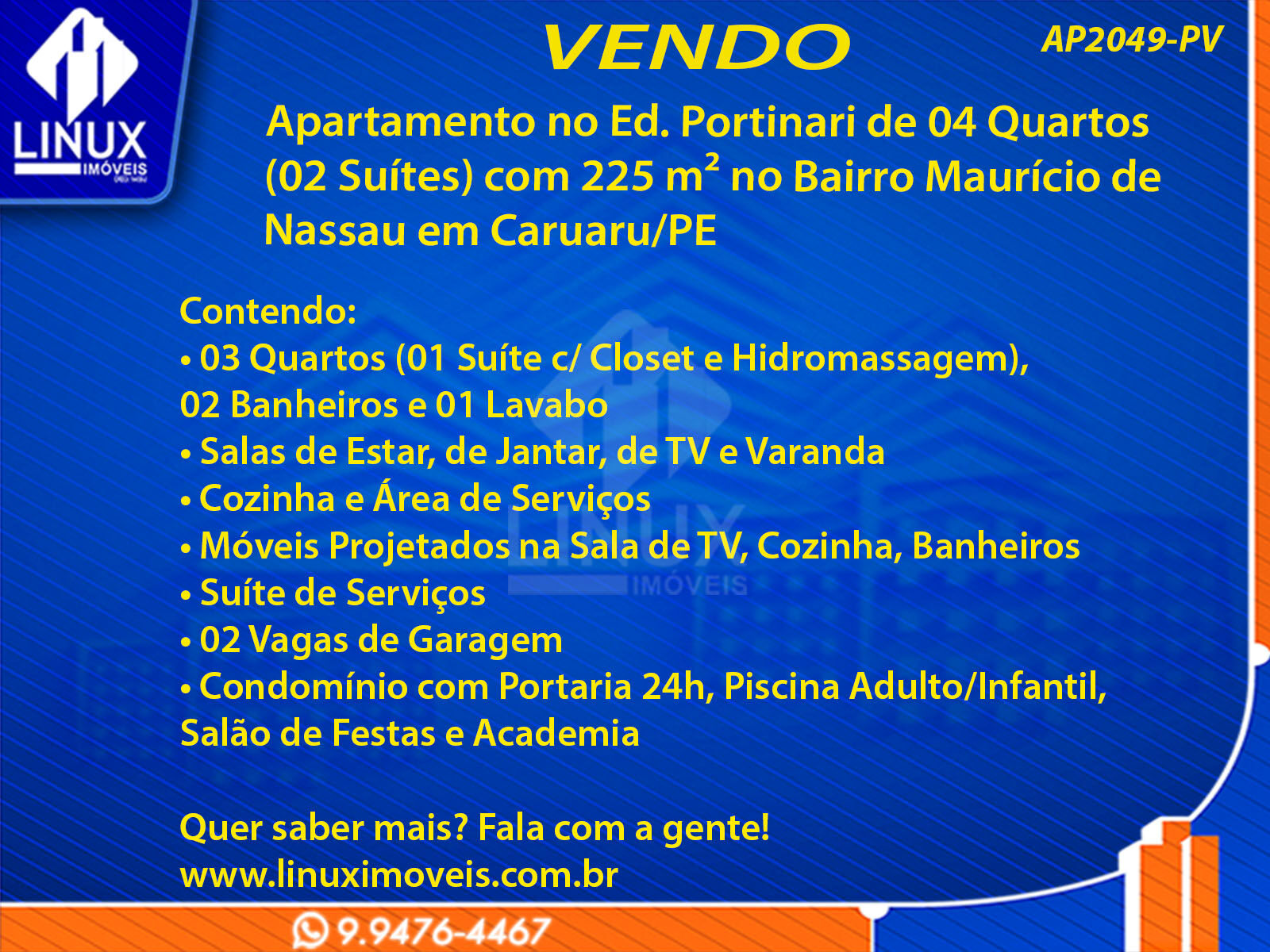 R$800.000,00 / VENDAApartamento no Ed. Portinari em Caruaru/PE à Venda (AP2049-PV)