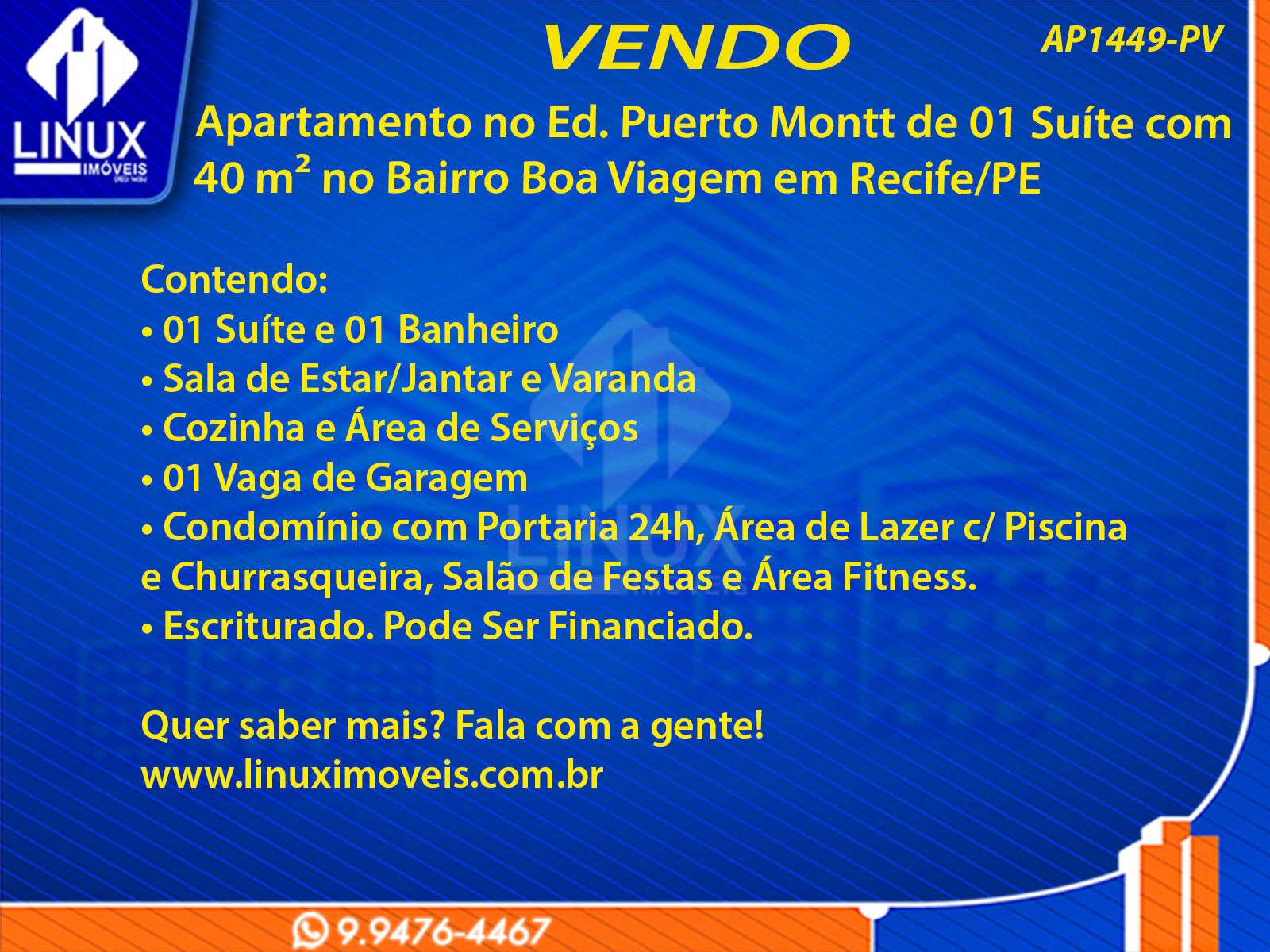 Apartamento no Ed. Puerto Montt em Recife/PE à Venda (AP1449-PV)