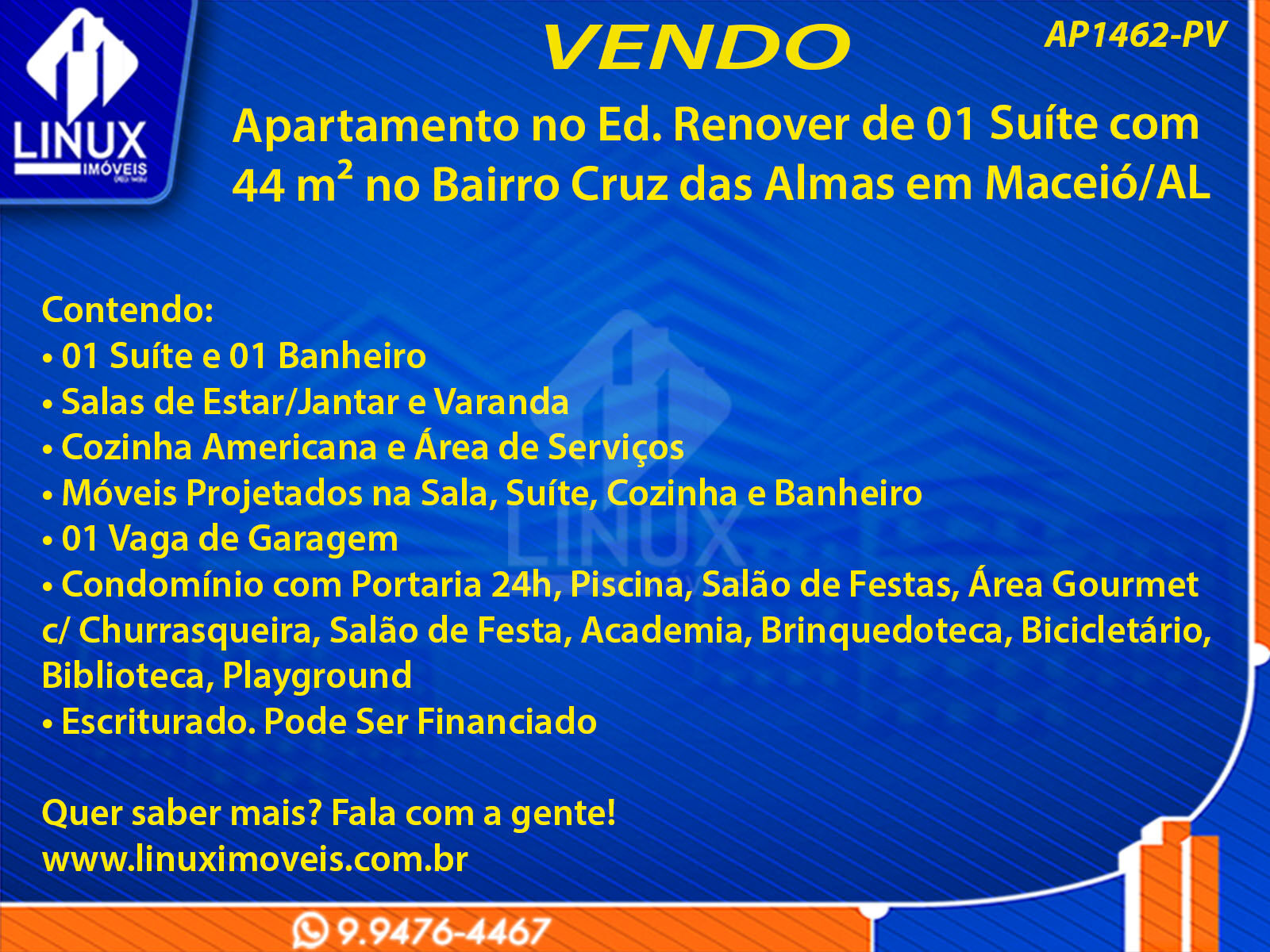 R$370.000,00 / VENDAApartamento no Ed. Renover em Maceió/AL à Venda (AP1462-PV)