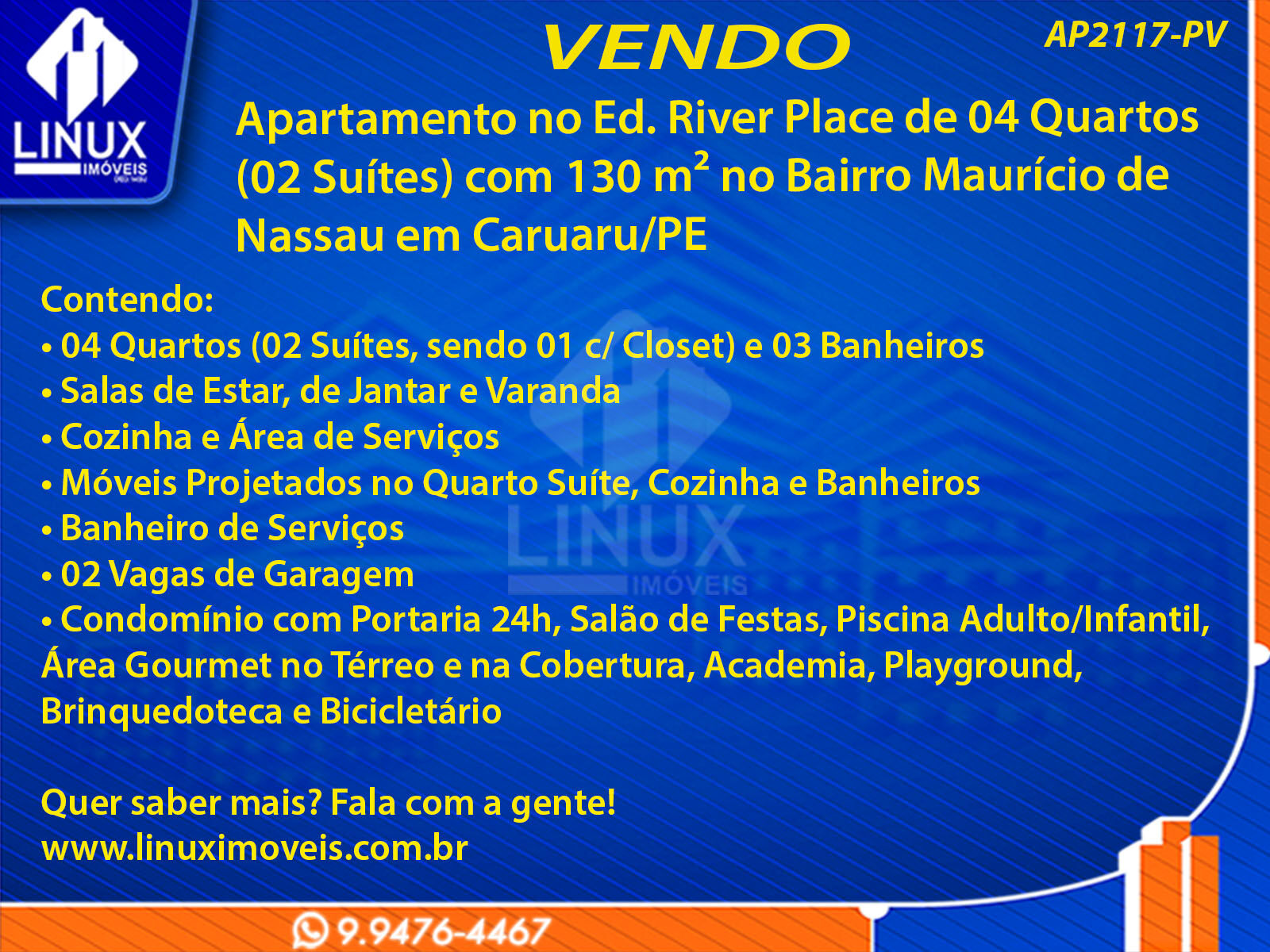 Apartamento no Ed. River Place em Caruaru/PE à Venda (AP2117-PV)
