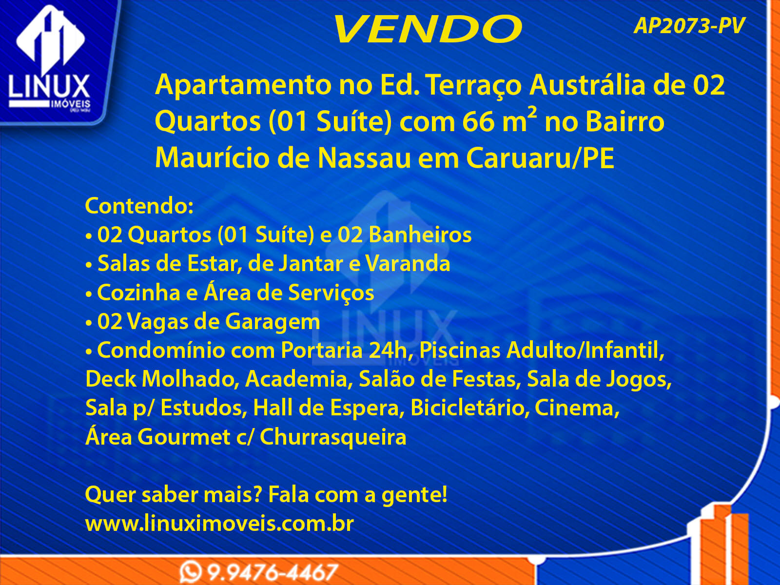 Apartamento no Ed. Terraço Austrália em Caruaru/PE à Venda (AP2073-PV)