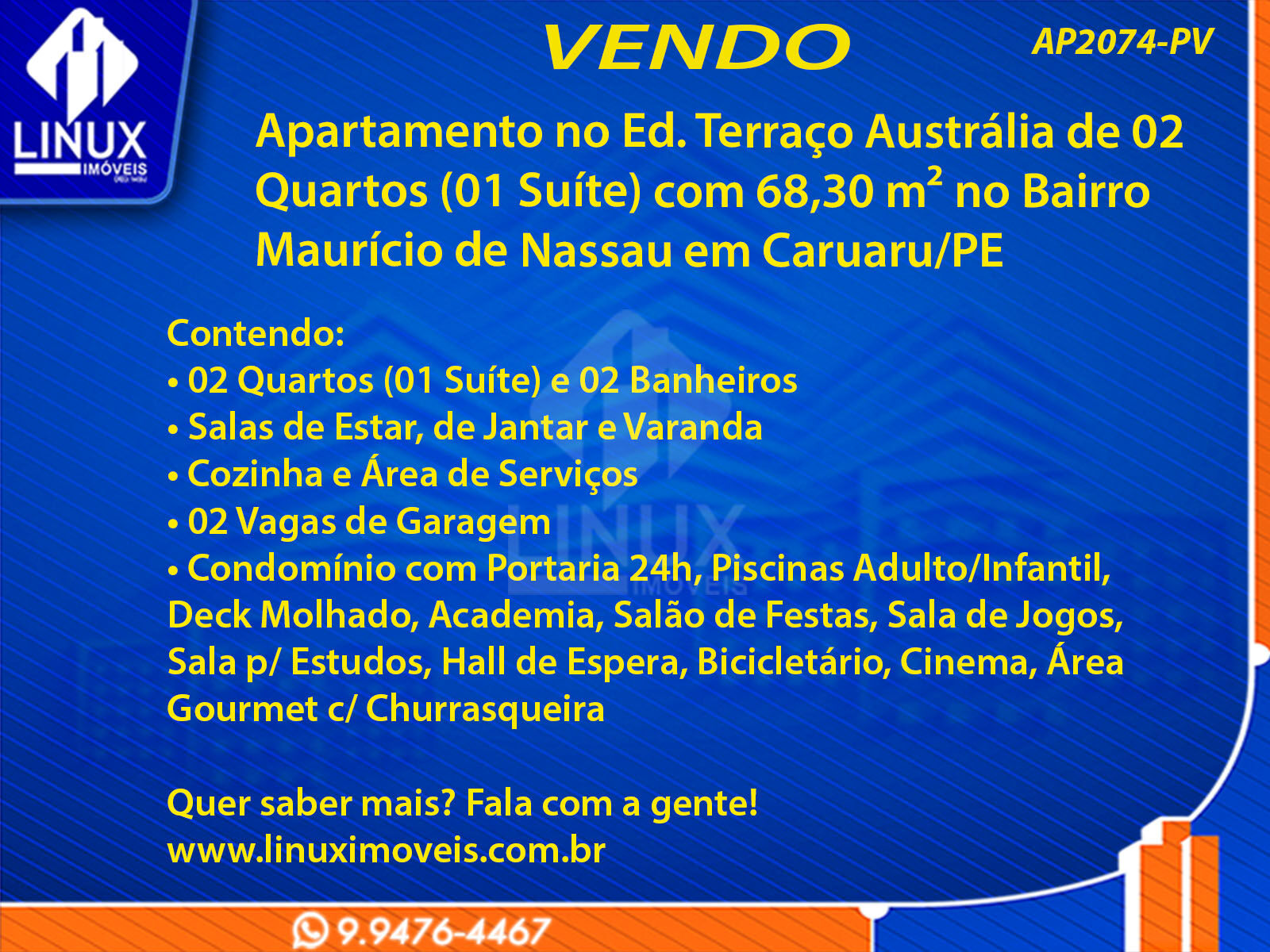 Apartamento no Ed. Terraço Austrália em Caruaru/PE à Venda (AP2074-PV)