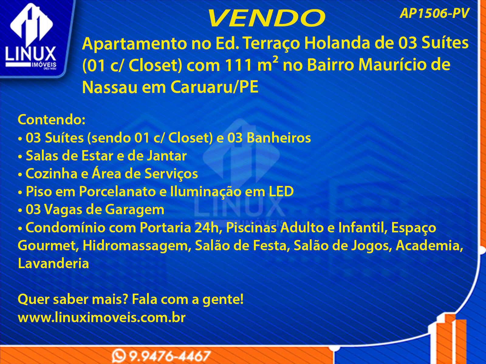 Apartamento no Ed. Terraço Holanda em Caruaru/PE à Venda (AP1506-PV)