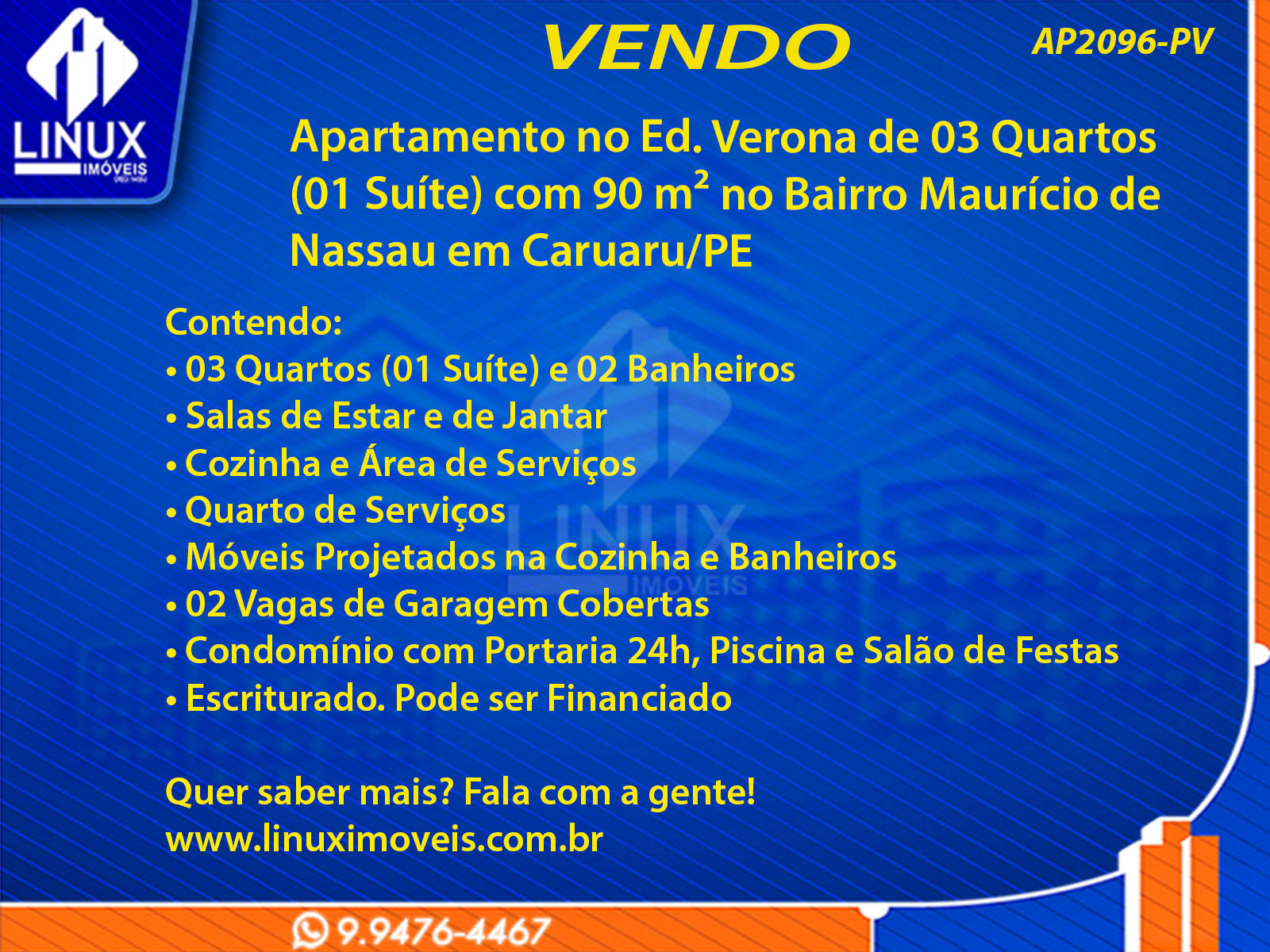 R$470.000,00 / VENDAApartamento no Ed. Verona em Caruaru/PE à Venda (AP2096-PV)