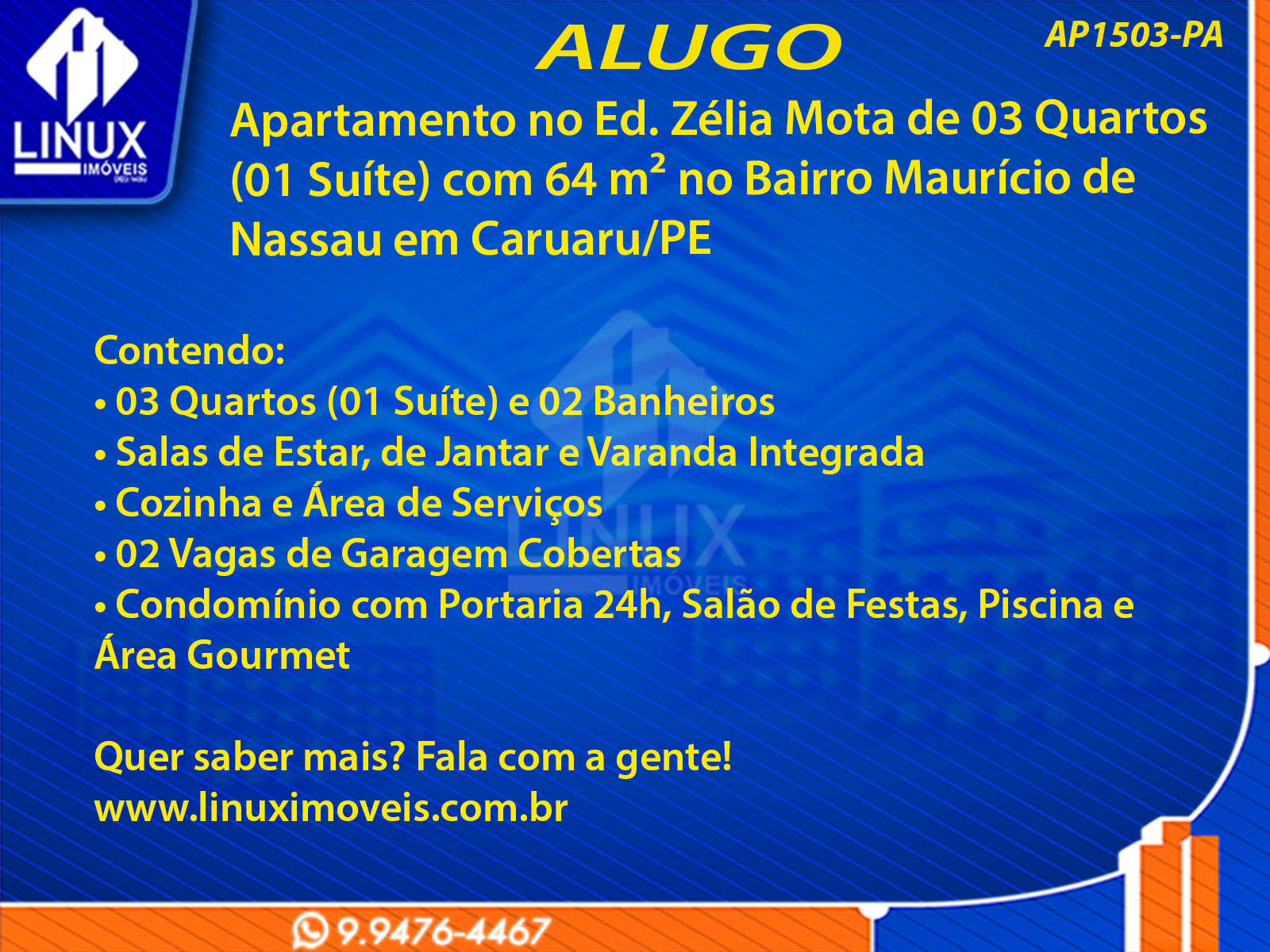 Apartamento no Ed. Zélia Mota em Caruaru/PE p/ Locação (AP1503-PA)