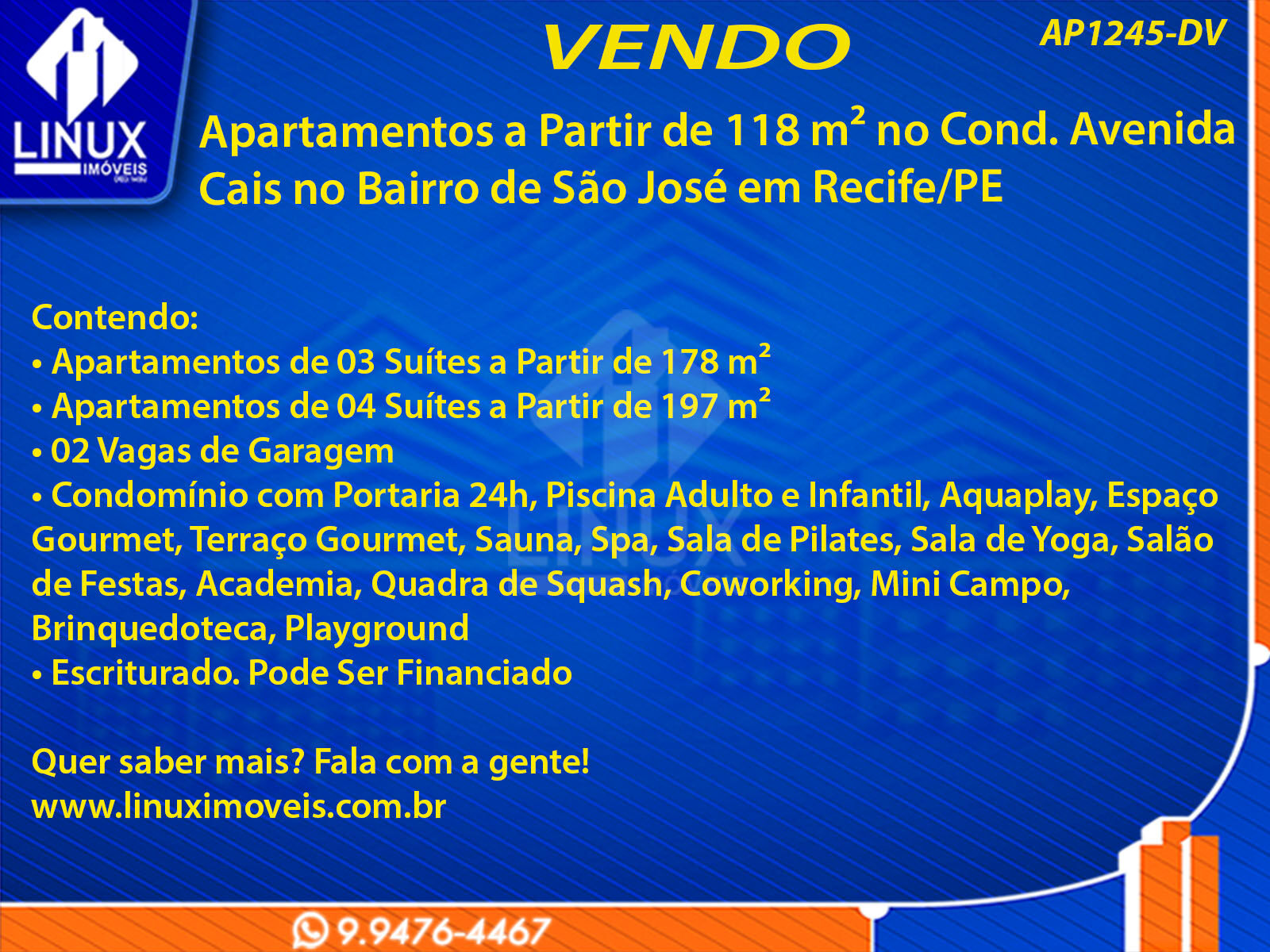 Apartamentos no Cond. Avenida Cais em Recife/PE à Venda (AP1245-DV)