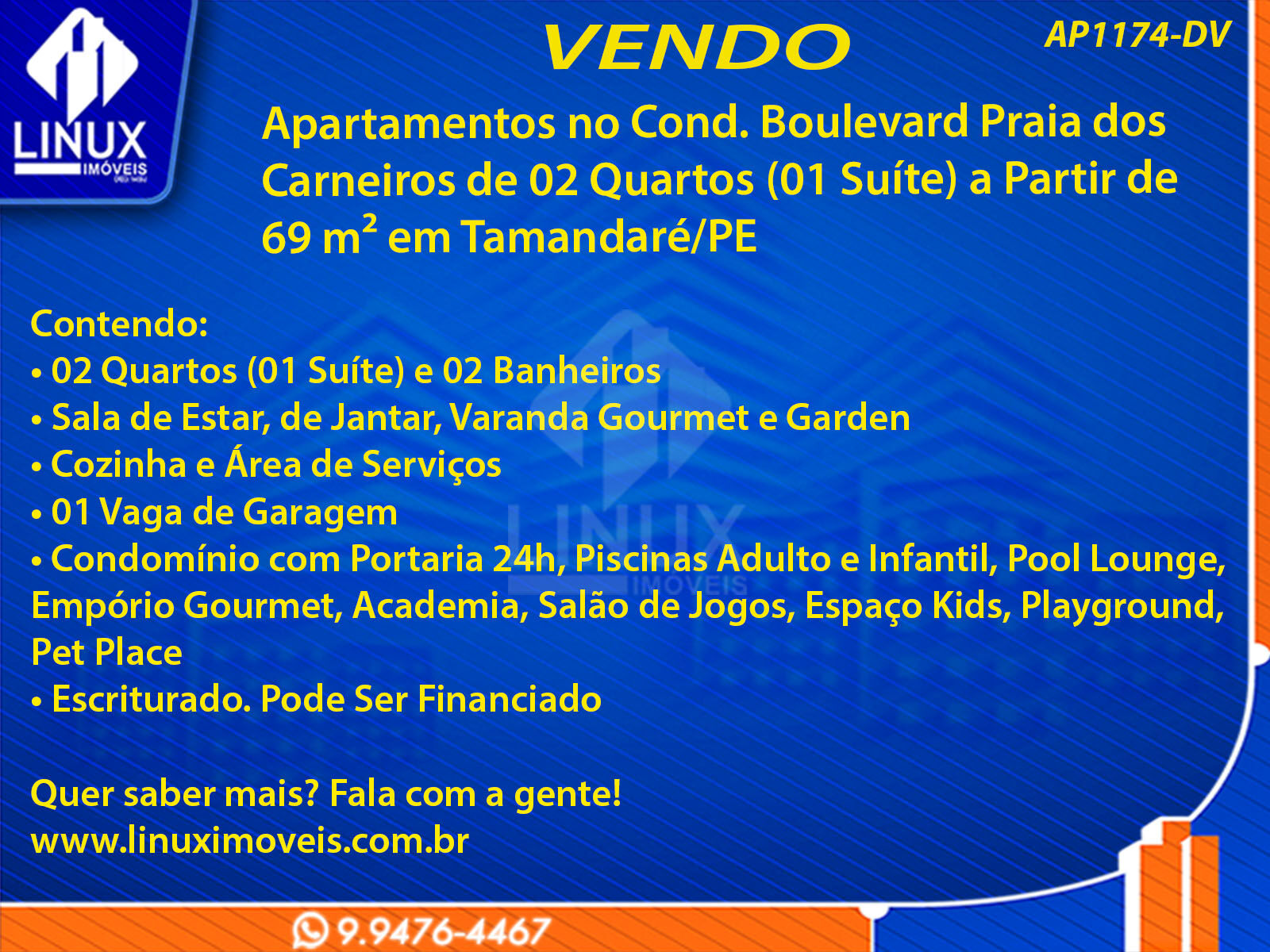 Apartamentos no Cond. Boulevard Praia dos Carneiros à Venda (AP1174-DV)