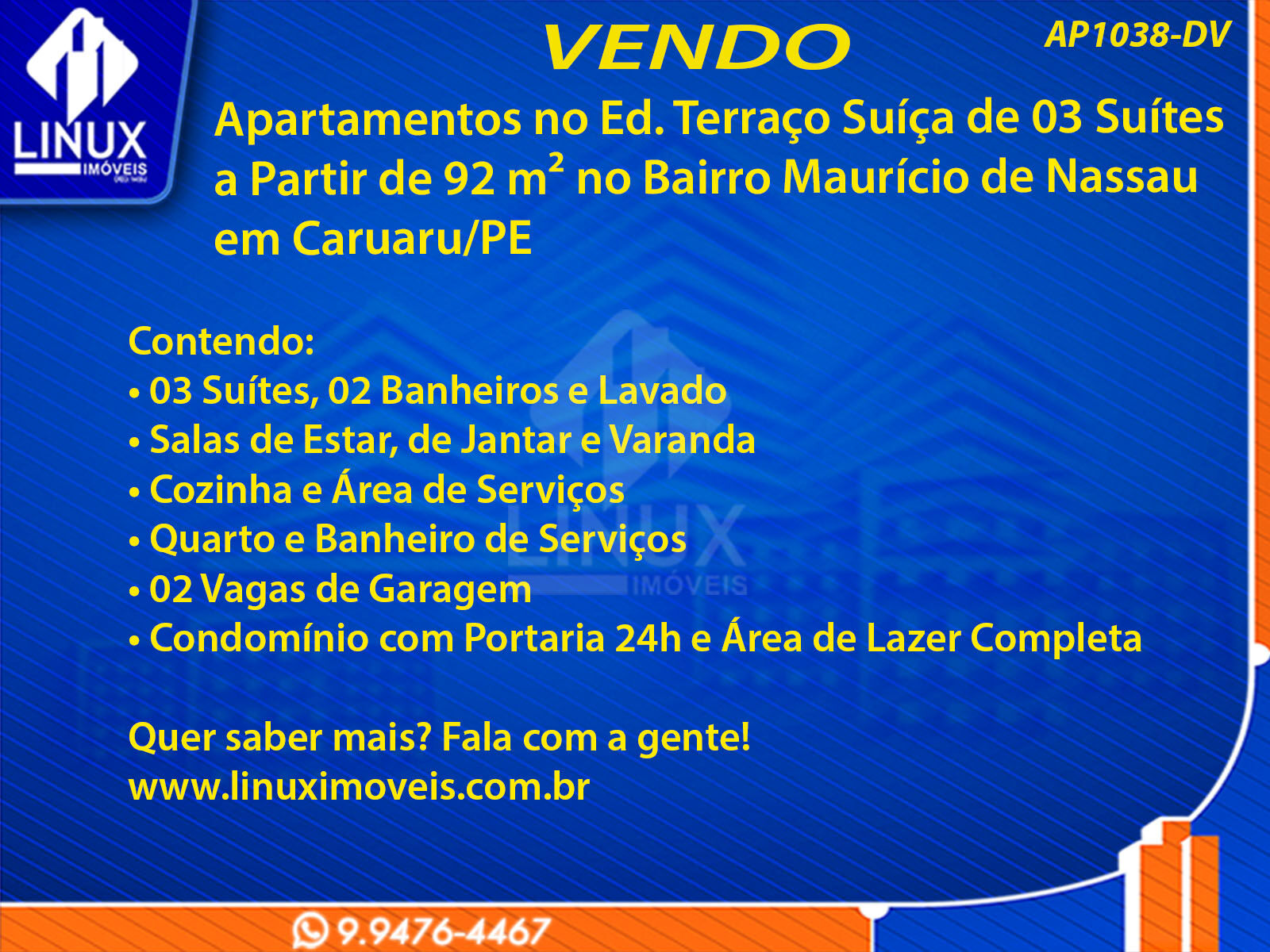 R$545.040,00 / VENDAApartamentos no Ed. Terraço Suíça em Caruaru/PE à Venda (AP1038-DV)