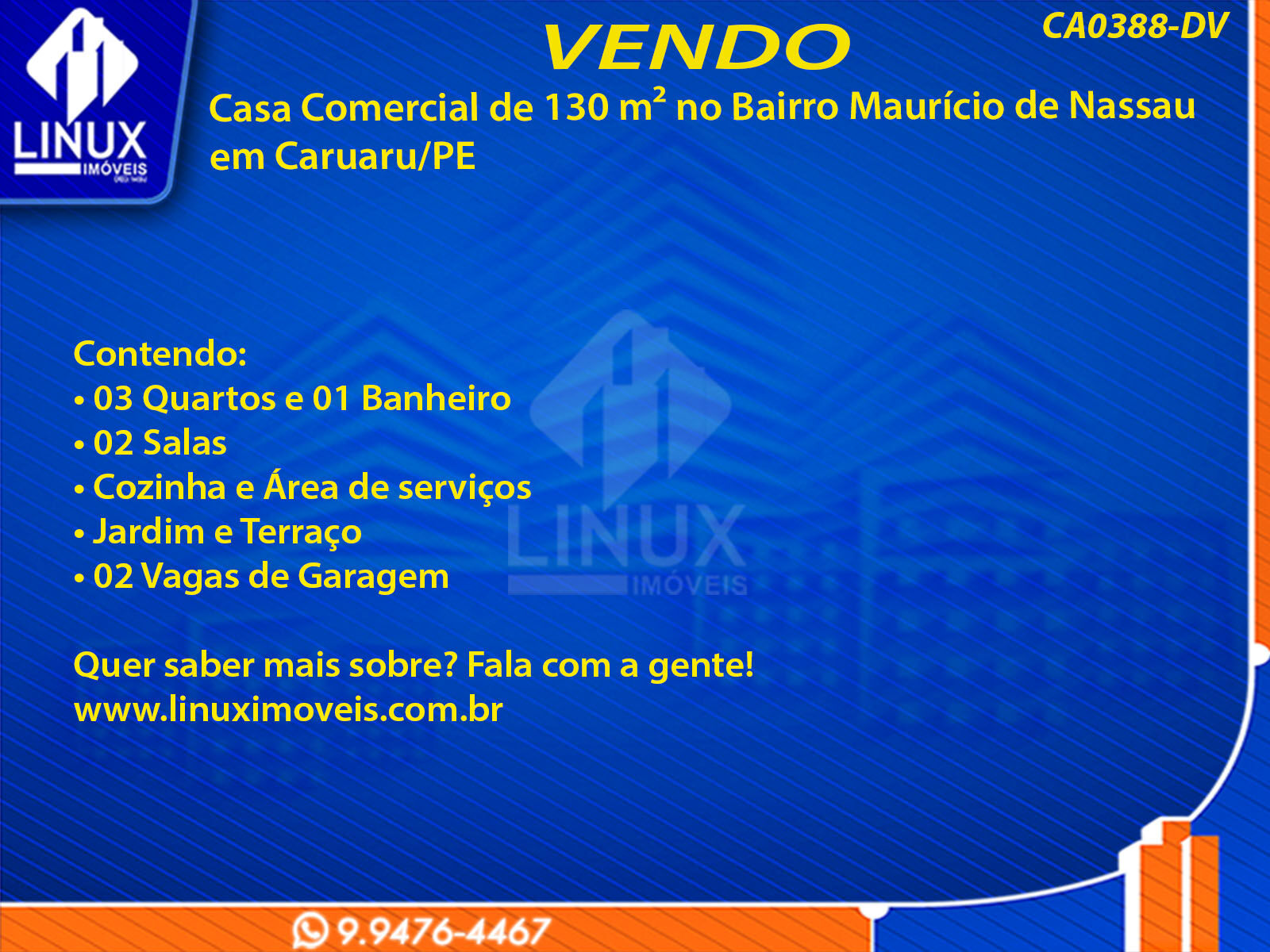 Casa Comercial no Bairro Maurício de Nassau em Caruaru/PE à Venda (CA0388-DV)