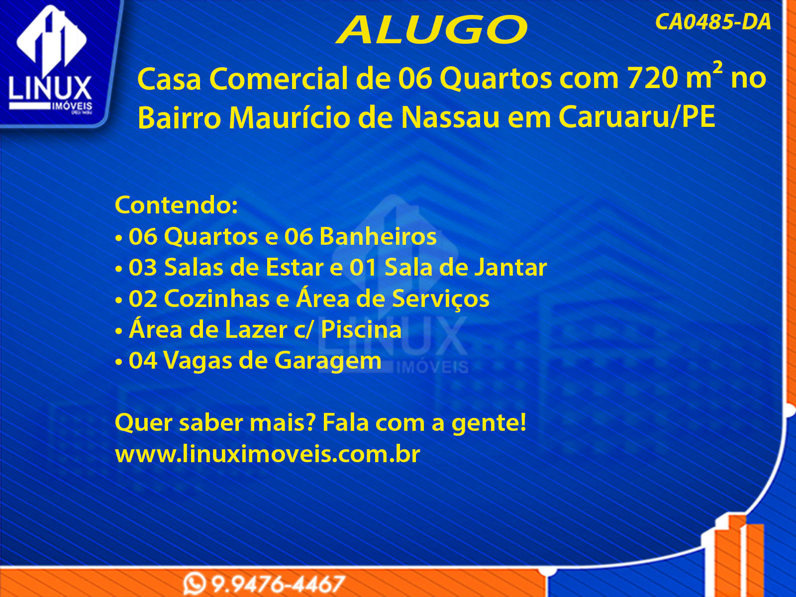 R$20.000,00 / ALUGUELCasa Comercial no Bairro Maurício de Nassau em Caruaru/PE p/Locação (CA0485-DA)