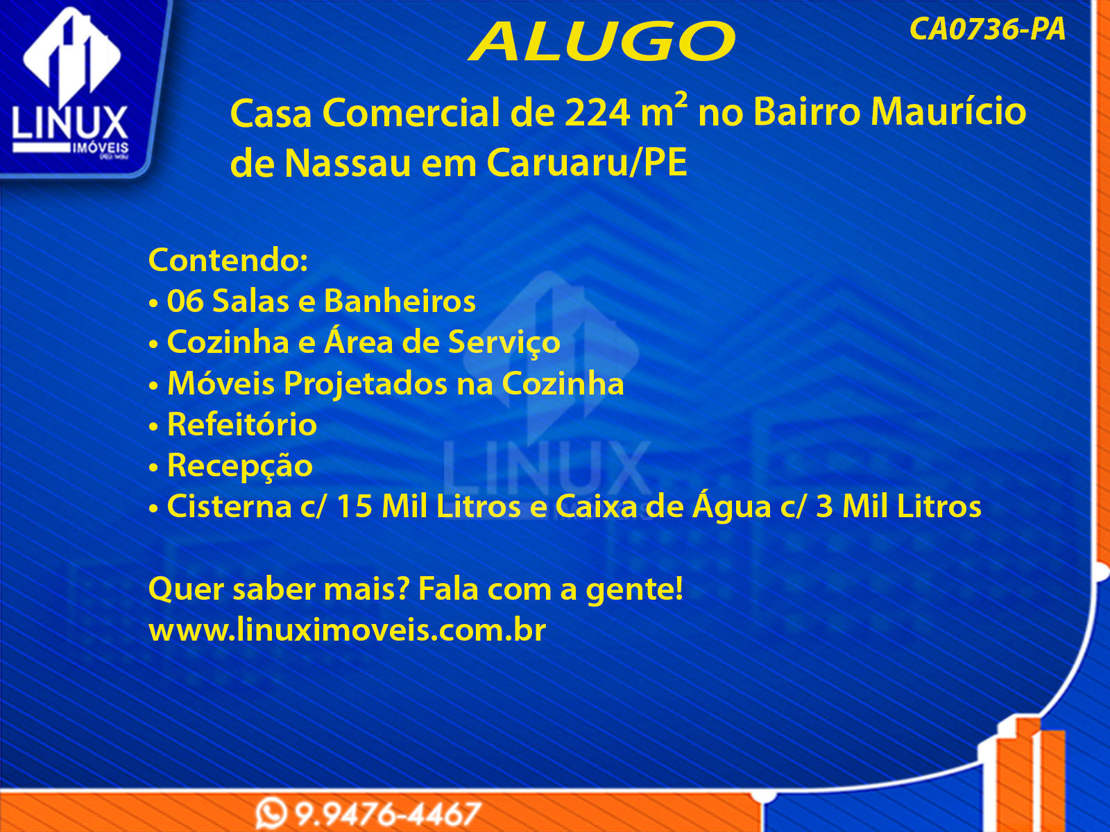 Casa Comercial no Bairro Maurício de Nassau p/ Locação (CA0736-PA)