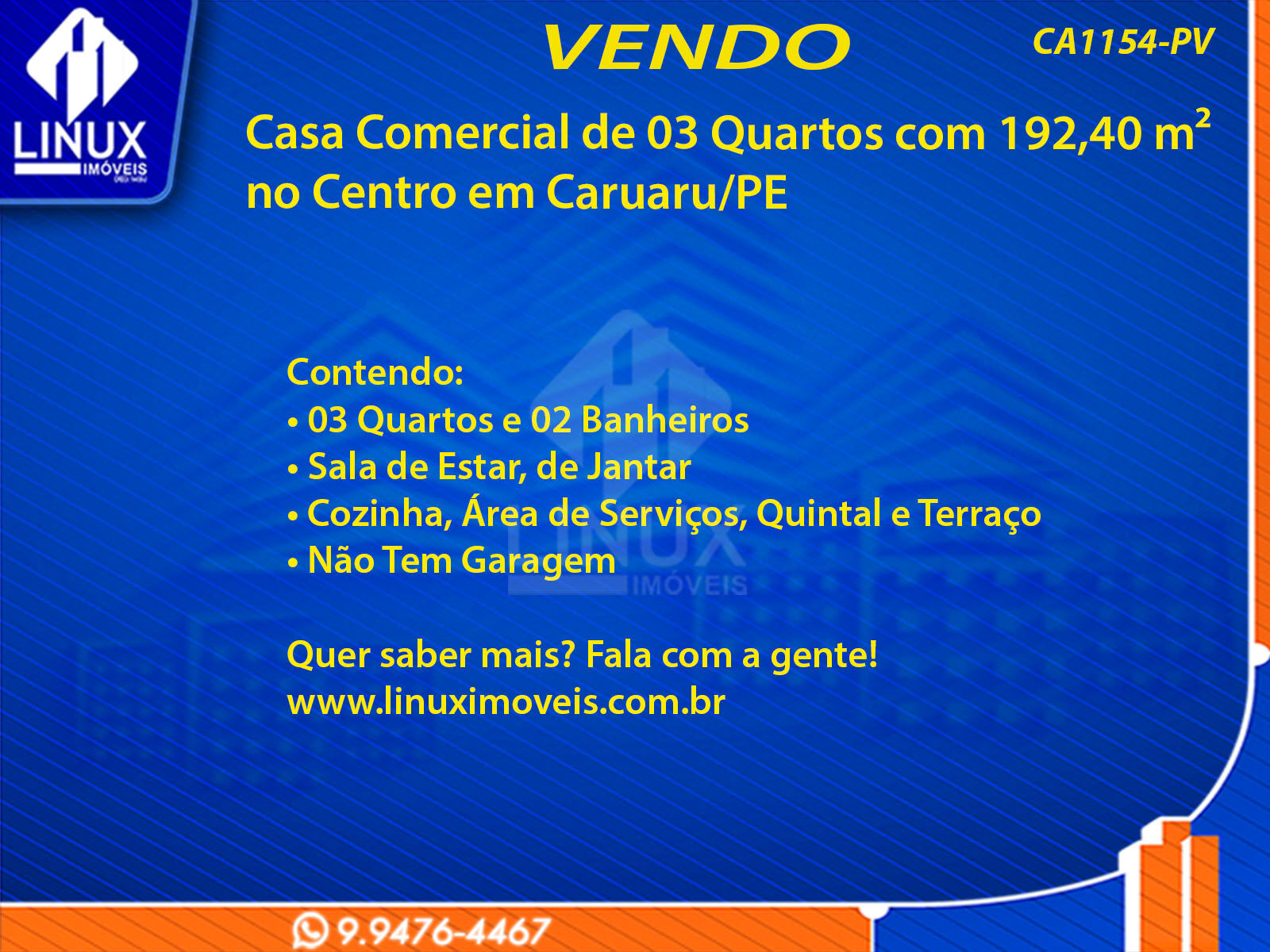 Casa Comercial de 03 Quartos com 192,40 m² no Centro em Caruaru/PE