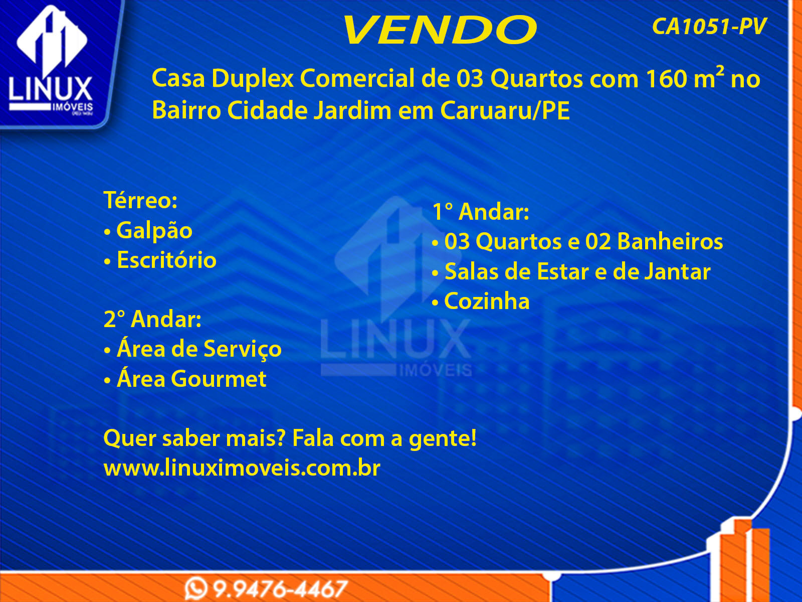 Casa Duplex Comercial no Bairro Cidade Jardim em Caruaru/PE à Venda (CA1051-PV)