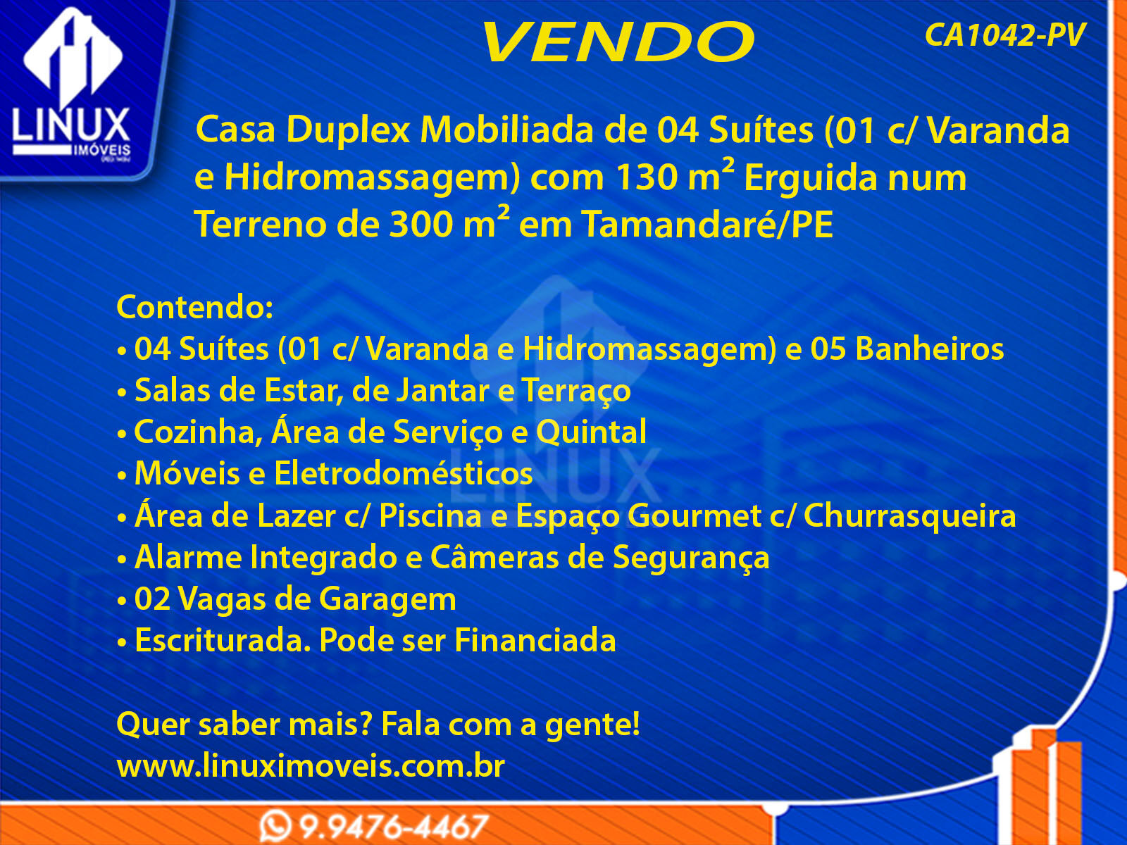 Casa Duplex Mobiliada em Tamandaré/PE à Venda (CA1043-PV)