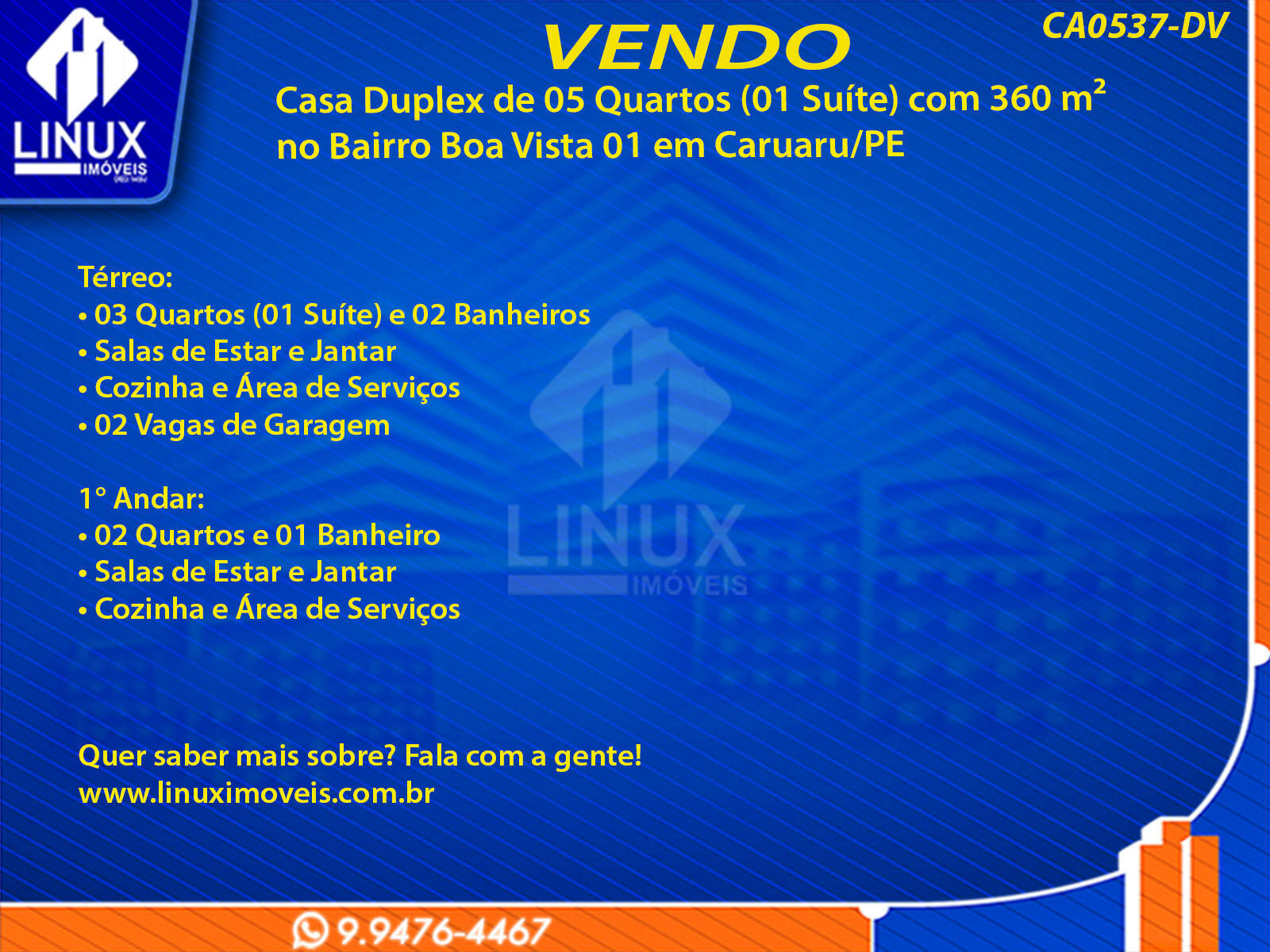 Casa Duplex no Bairro Boa Vista 1 em Caruaru/PE à Venda (CA0537-DV)